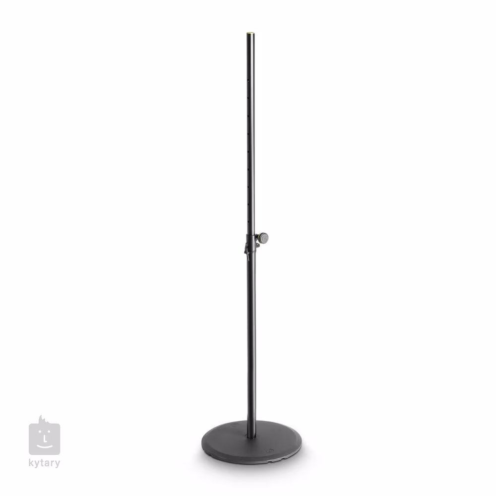 Ez a robusztus hangszóróállvány sokkal kevesebb helyet foglal, mint a hagyományos állványok, mégis rendkívül stabil, köszönhetően az ovális 10 kg-os alapnak és a további 5 kg-os nehéz acéllemeznek (az acéllemez könnyen rögzíthető az alaphoz, és szükség szerint bármikor eltávolítható). Az állvány acél és öntöttvas szerkezetű, 35 mm átmérőjű rúddal, ergonomikus rögzítőcsavarral és 1050 és 1800 mm közötti magasságállítással rendelkezik.