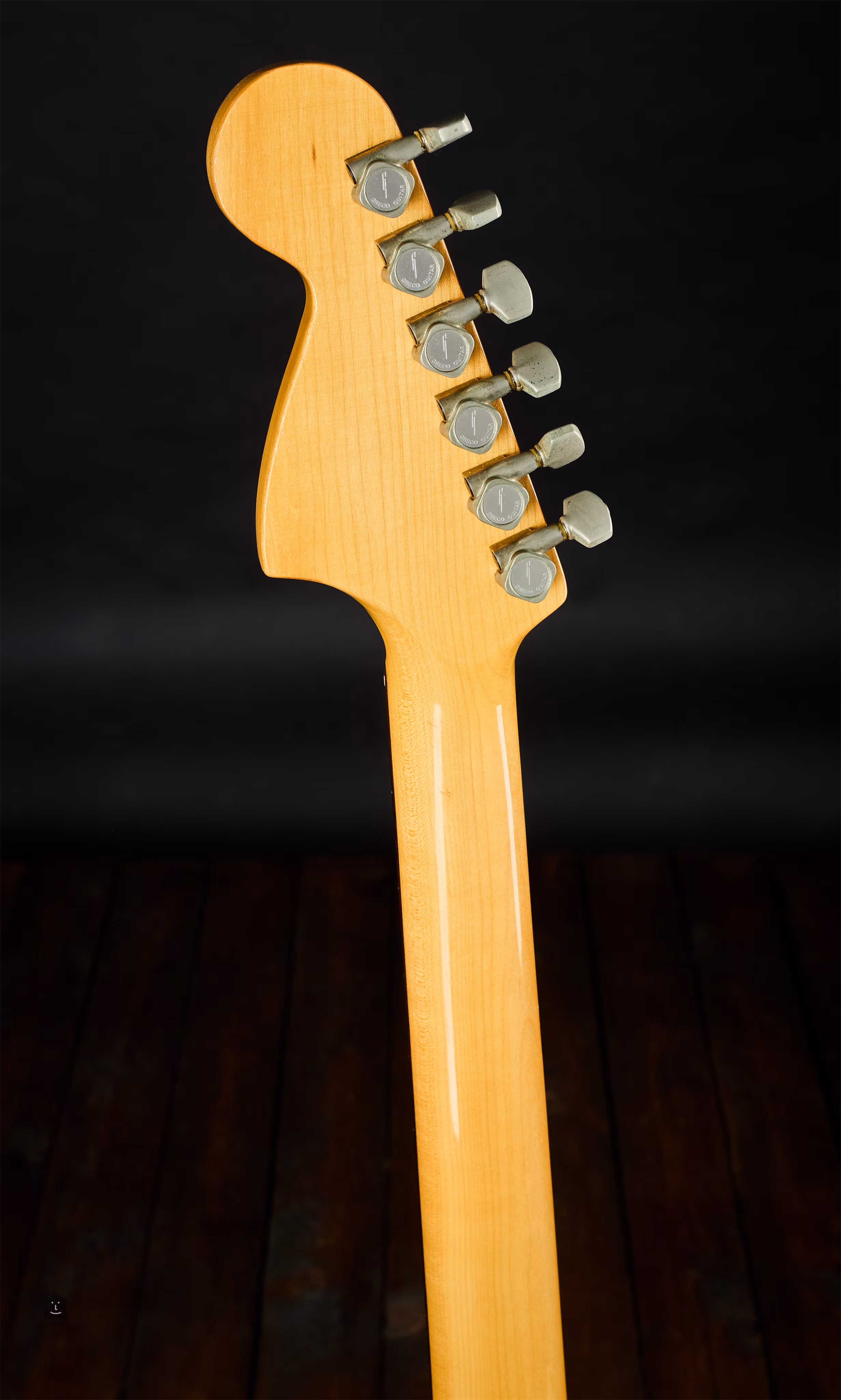 Minden eredeti, kivéve a kicserélt hangerőpotmétert; az elektronikában eredeti vintage single hangszedők és háromállású kapcsoló van beépítve. A test hátulján matricanyomok láthatók.