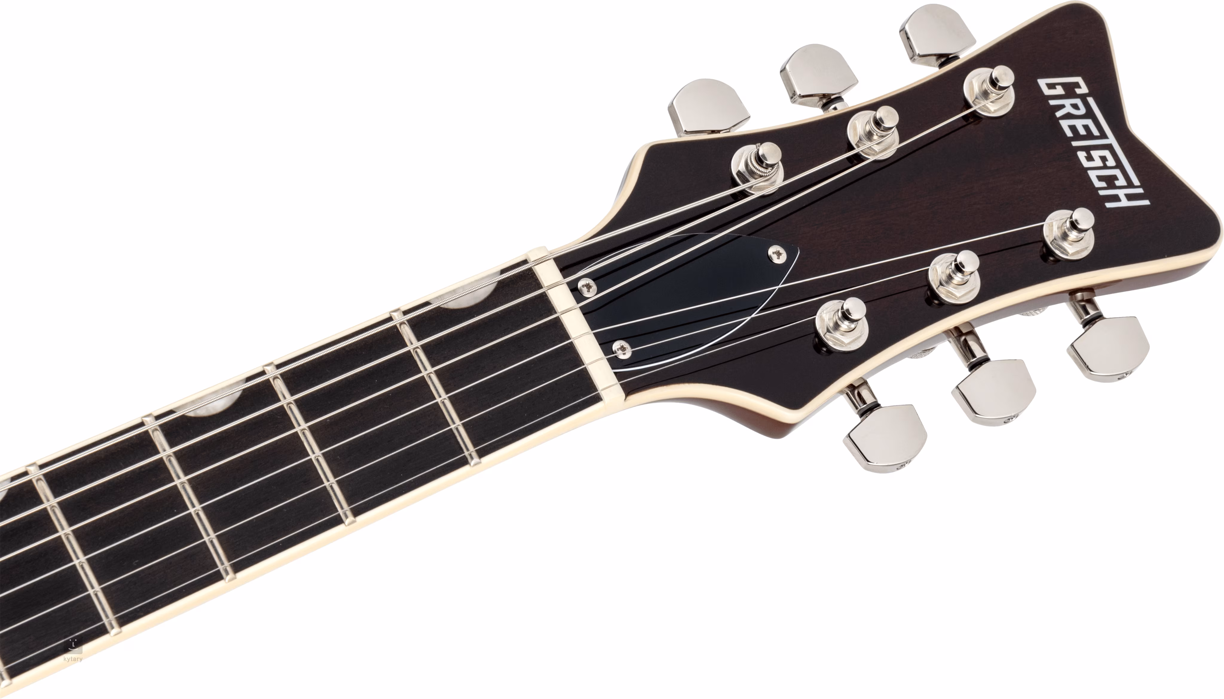 A stabil hangolás és a jó sustain garantálja a húrok rögzítését a Graphtech NuBone anyagból készült nulladik fekvésen, a gyári zárható die-cast mechanikákban és a zárható húrtartóban/húrtartóban (LockDown Locking Bridge). A hangszer stílusos kialakítását hangsúlyozza a test, a fogólap és a fej peremének szegélyezése, a nikkel hardver és a Black Plexi pickguard.
