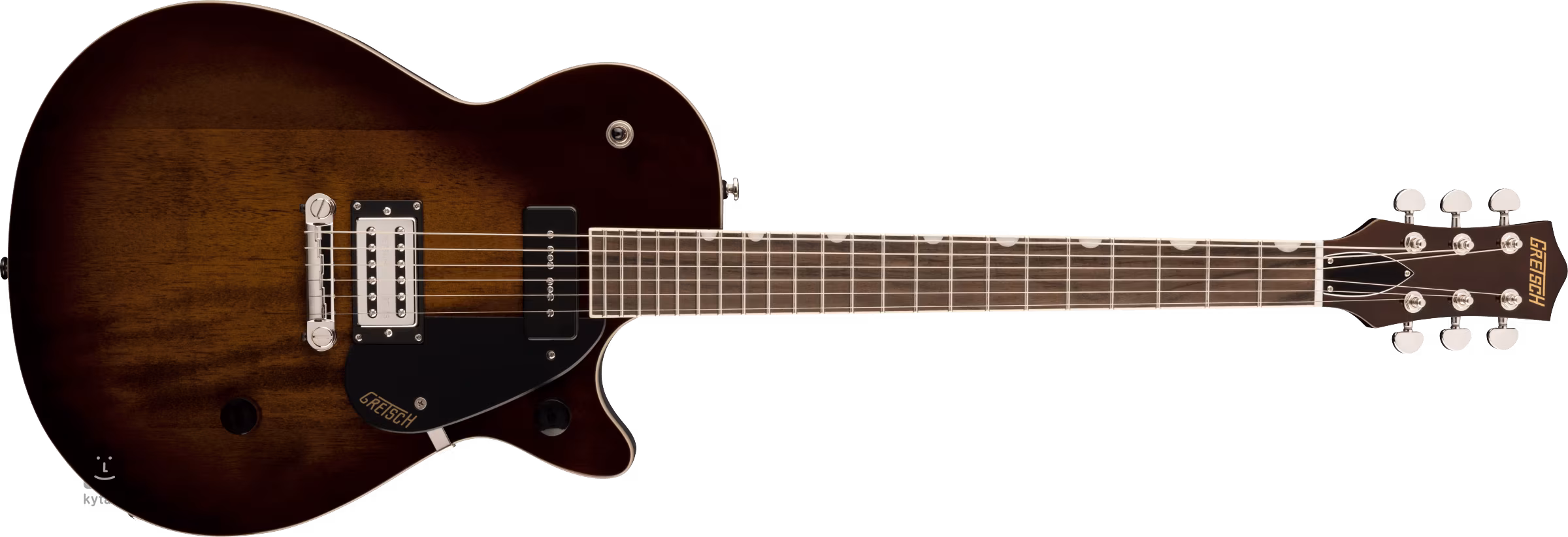 A G2215-P90 egy vágású teste nato fából készült. A vékony U-profilú, csavaros nyak egy huszonkét Medium Jumbo bunddal ellátott fügefa fogólapra van ragasztva. A felületén való tájékozódást gyöngyházutánzatból készült, eltolt helyzetjelzők segítik (Neo-Classic Thumbnail).