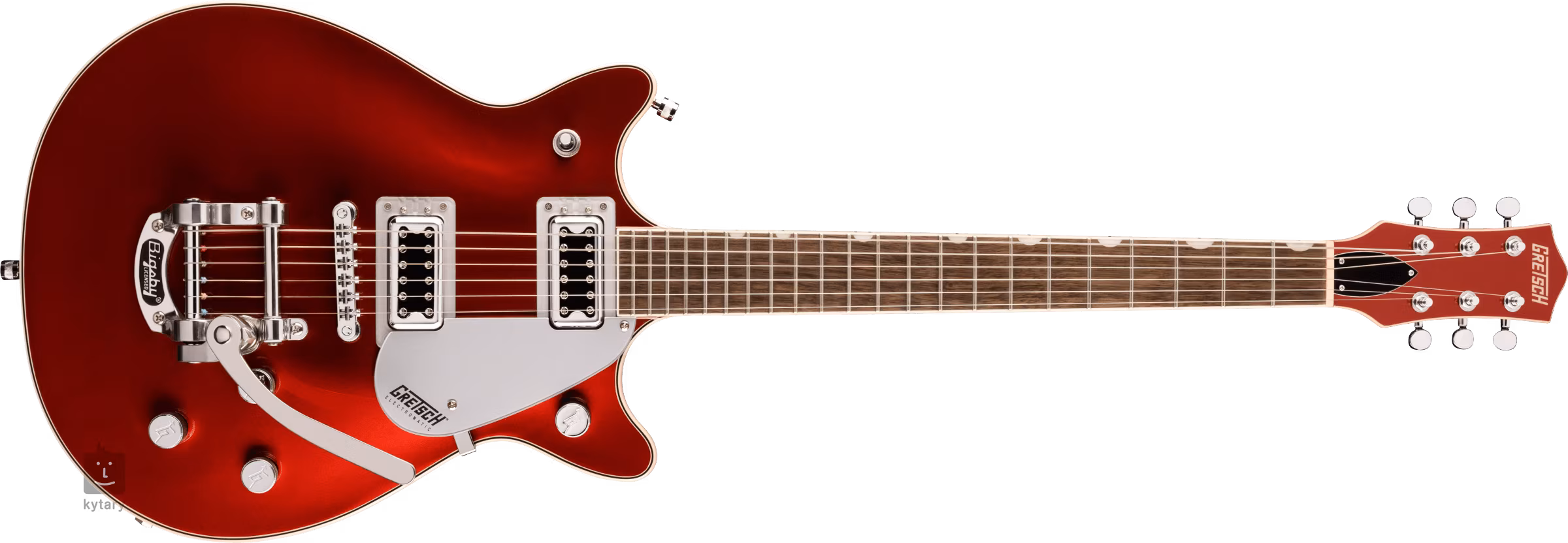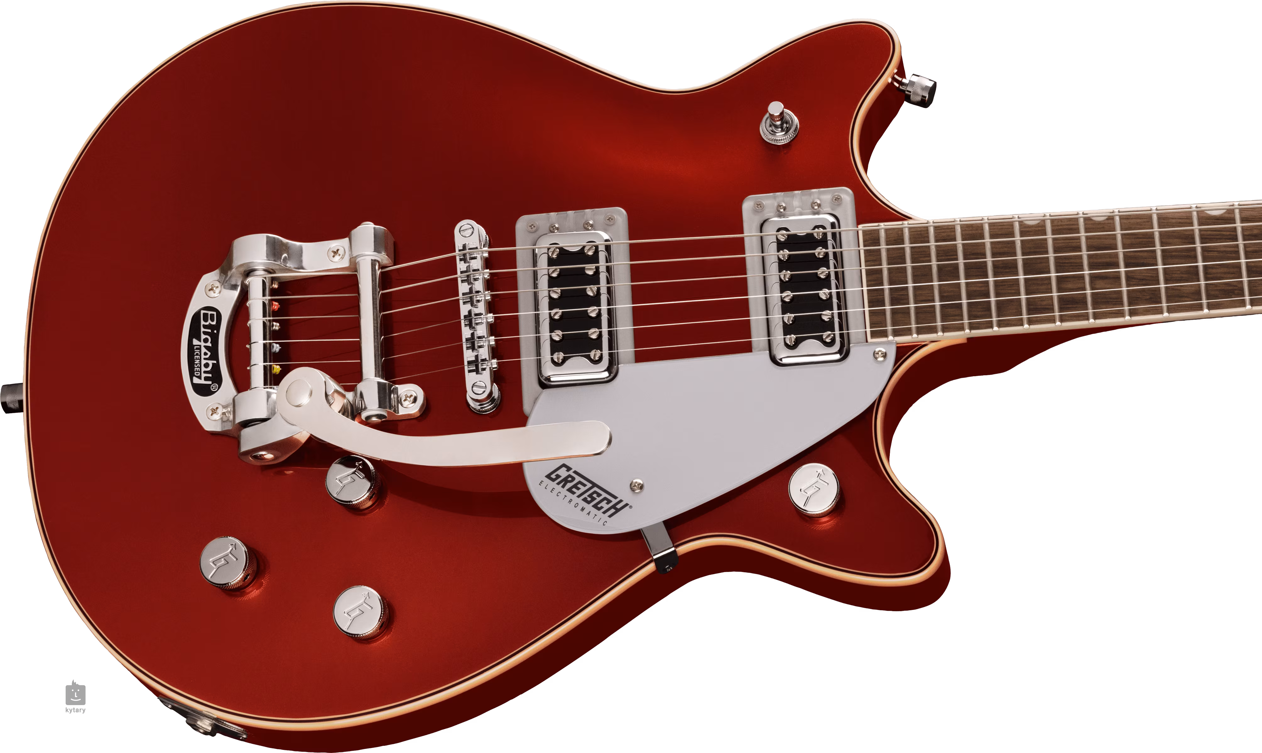 A dupla vágású Gretsch G5232T Firestick Red modell az Electromatic sorozat része. A gitár kamrás mahagóni testét íves juharfa tető díszíti. A vékony U-profilú mahagóni nyak egy huszonkét Medium Jumbo bunddal ellátott fügefa fogólapra van ragasztva. A felületén való tájékozódást gyöngyházutánzatból készült, eltolt helyzetjelzők segítik (Neo-Classic Thumbnail).