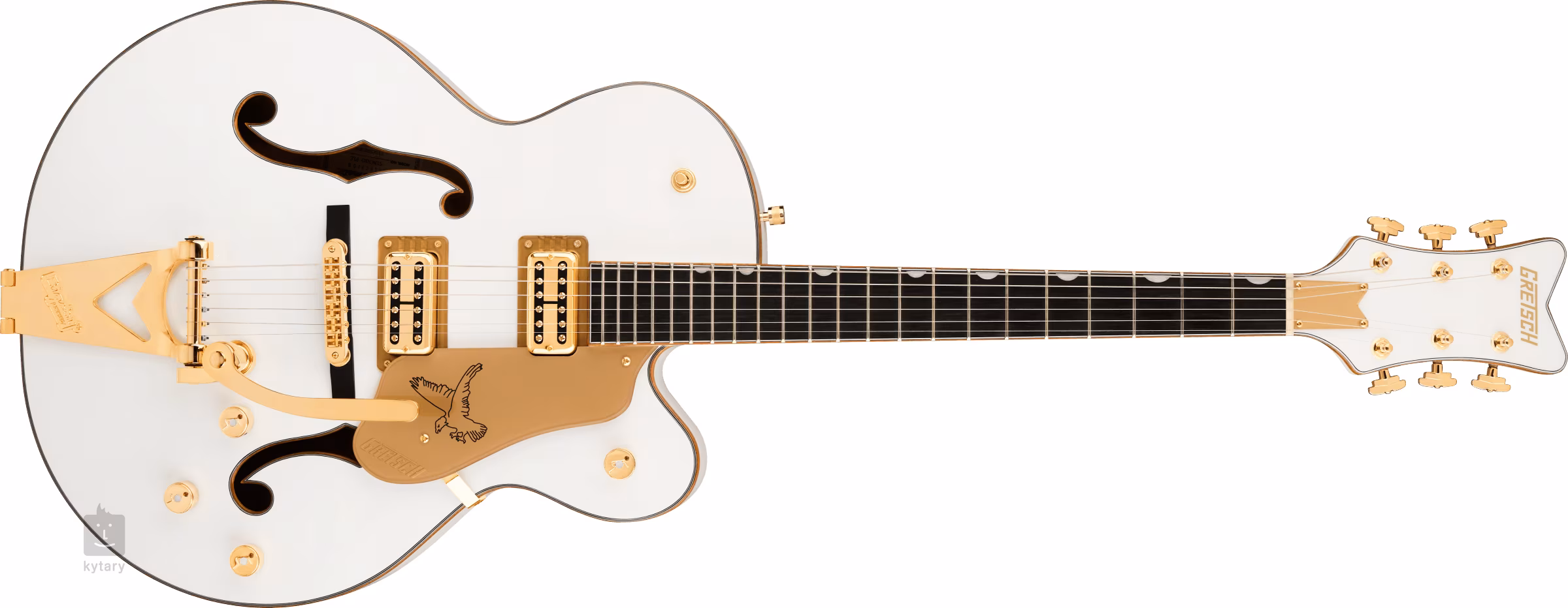 A húrok csont fogólapon keresztül Grover Super Rotomatic hangolókarokba és Adjusto-Matic ébenfa fogólapon keresztül Bigsby B60 V-Cutout tremolóba vannak szerelve. A szép kivitelezést a többrétegű arany díszítés a testen, a nyakon és a fejlécen, a Gold Plexi koptató és az arany hardverek hangsúlyozzák.
