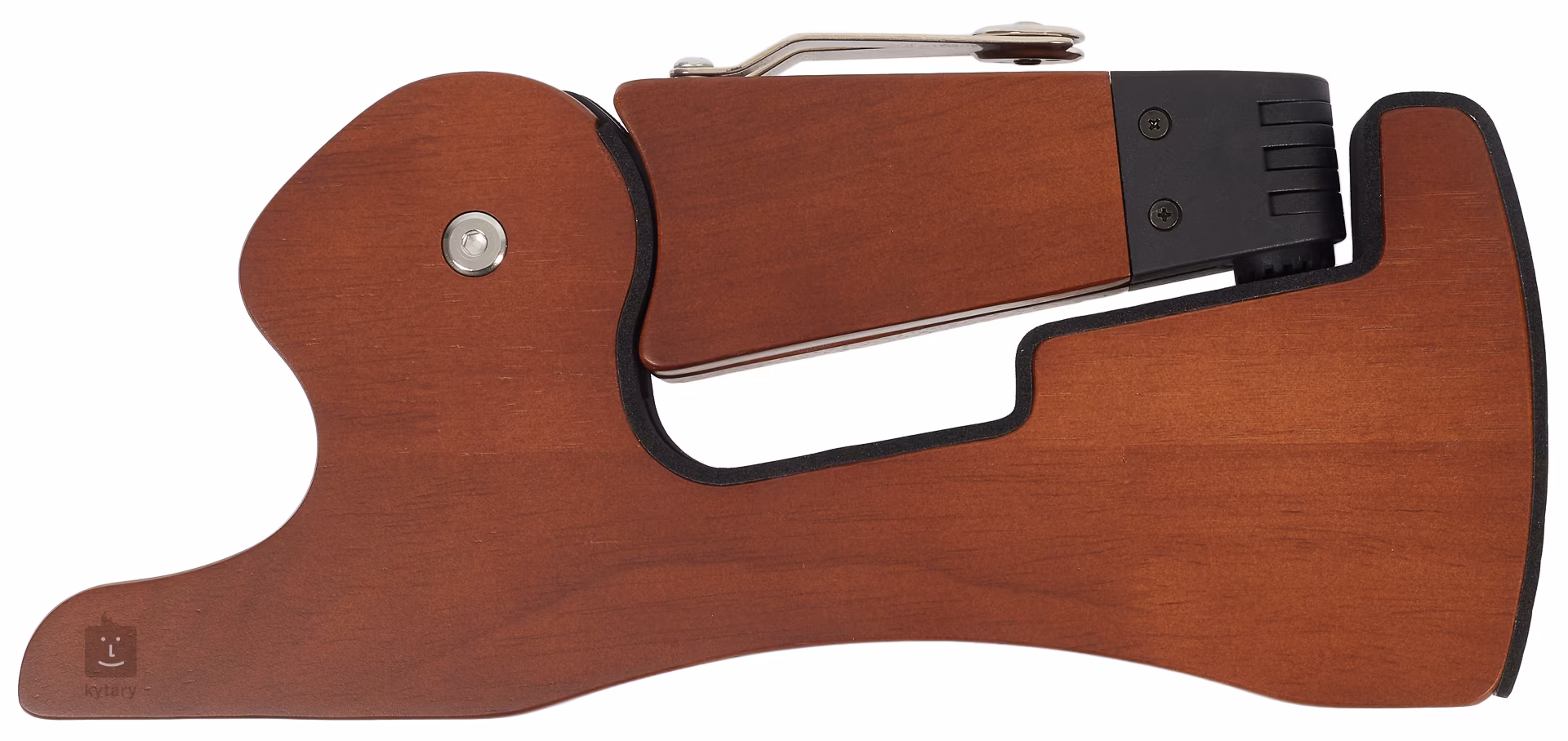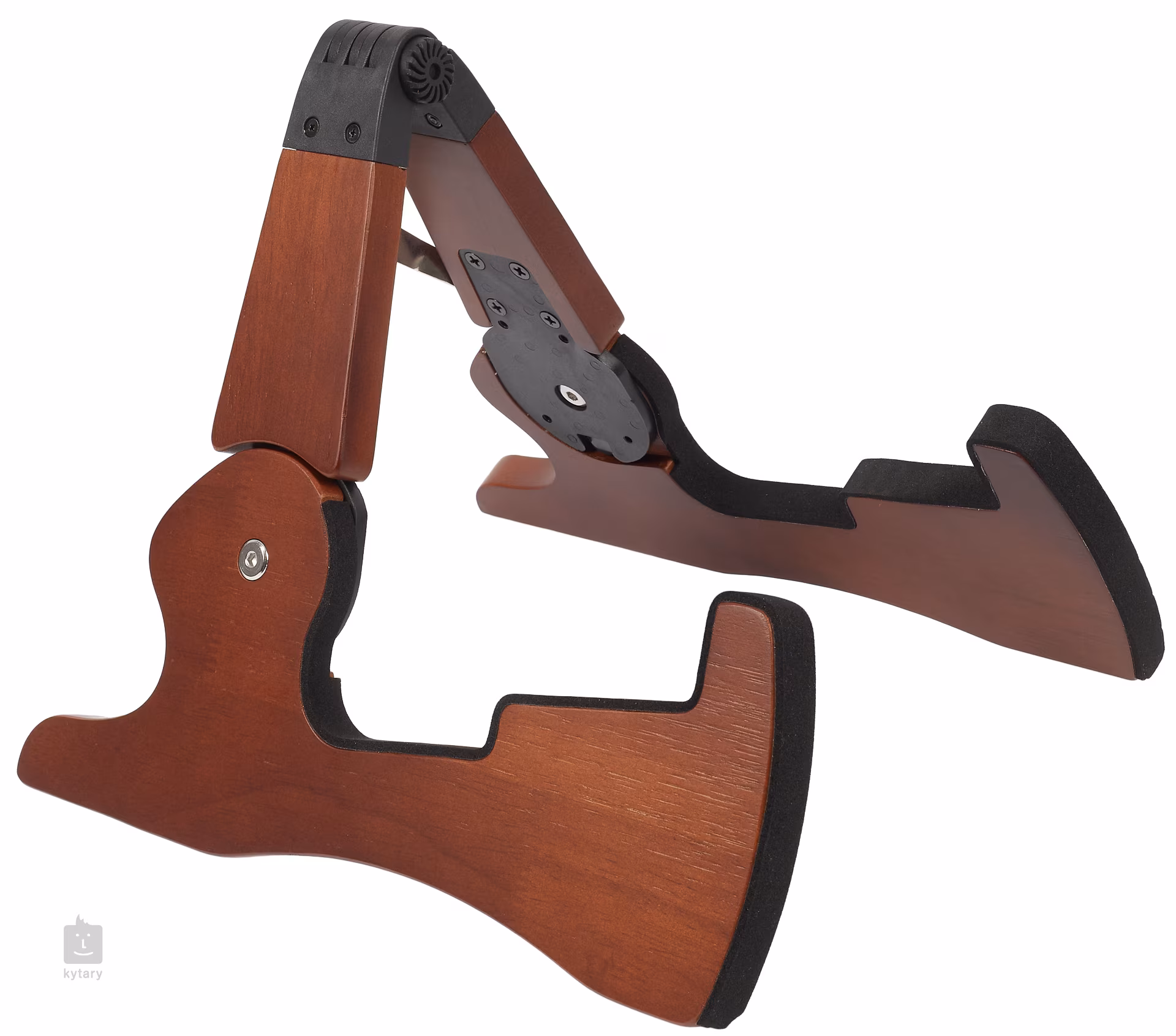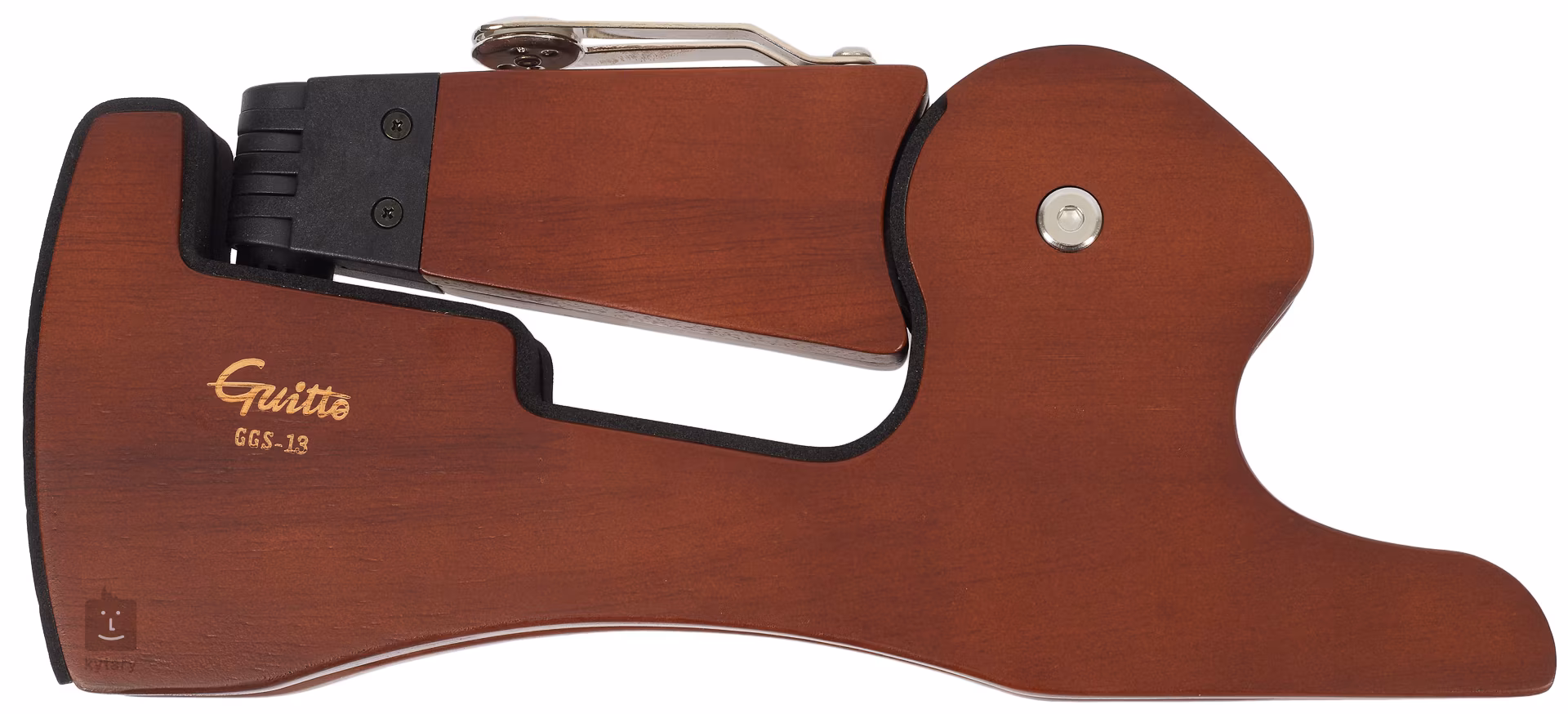 A Guitto GGS-13 gitárállvány elegáns fa kialakítású és összecsukható kivitelű a kényelmes szállítás érdekében. Összecsukott állapotban 30 x 13 x 3 cm-es, súlya pedig kevesebb mint 700 g, így bárhol elfér. Ugyanakkor stabilitást biztosít akusztikus vagy elektromos gitár és basszusgitár számára. Tartós gumifából készült, és ahol a hangszerhez ér, habszivaccsal vagy szilikagéllel van bevonva, ami megakadályozza a karcolásokat.