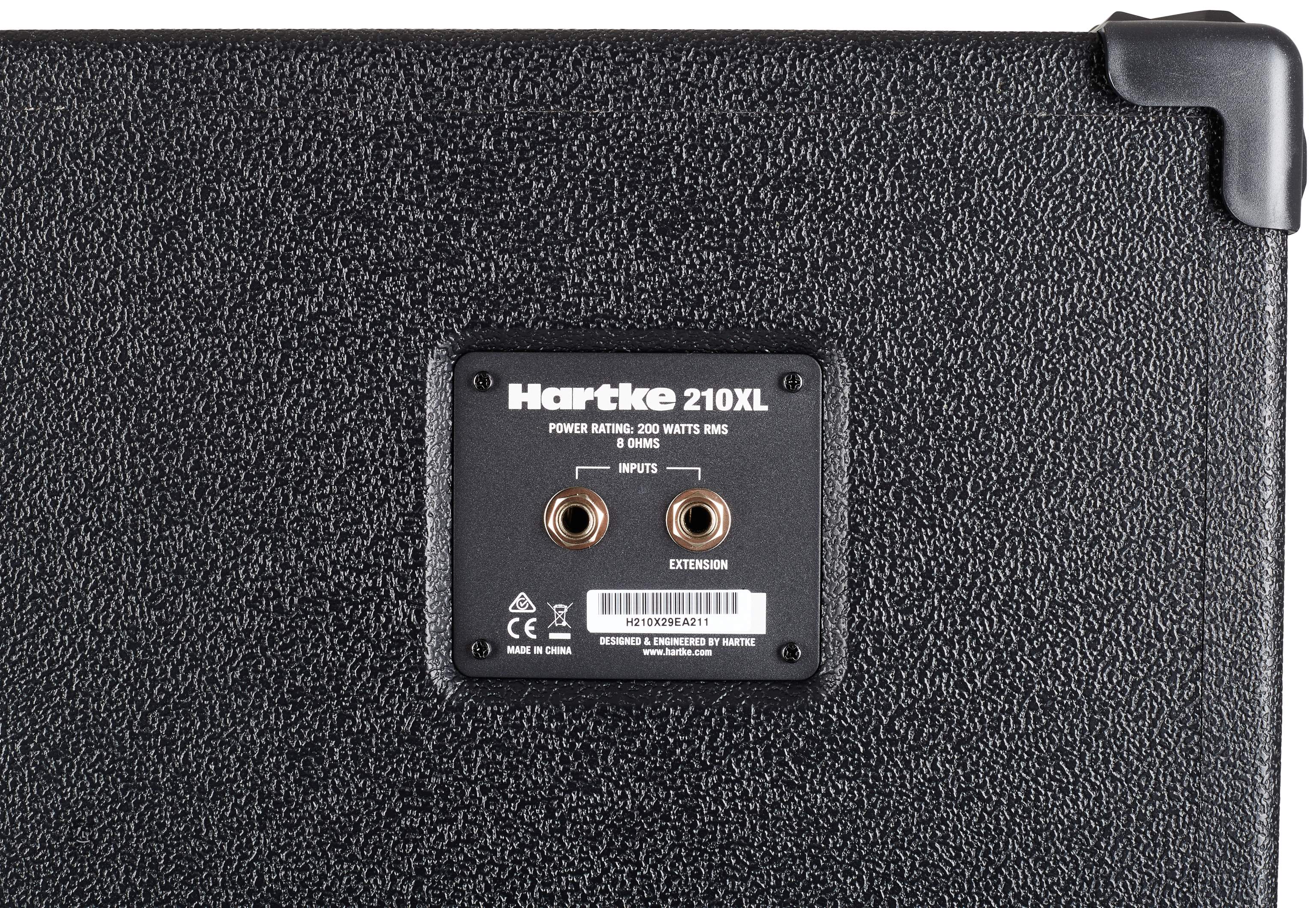 Ez a 2x10" konfigurációjú hangszóró 3/4" vastag rétegelt lemezből készül, amelyet texturált vinyl borít. A zárt dobozos kialakítás gyors megszólalást biztosít nagyszerű dinamikával és akár 200 watt RMS teljesítményt is képes kezelni 8 ohmon. A bemenetet egy pár 6,3 mm-es csatlakozó kezeli, a hangszórókat pedig a Hartke XL dobozokra jellemző fekete fémrács védi.