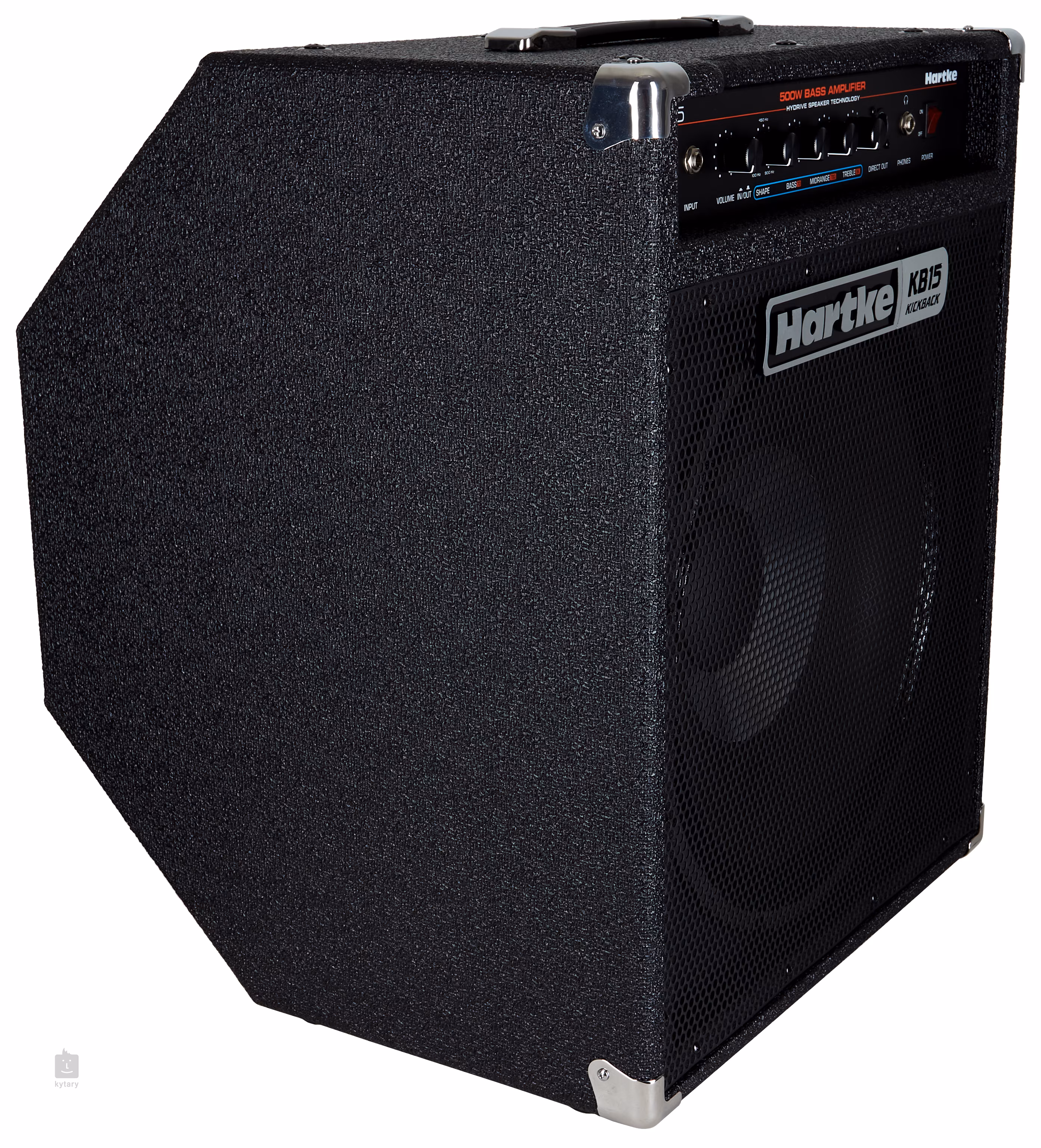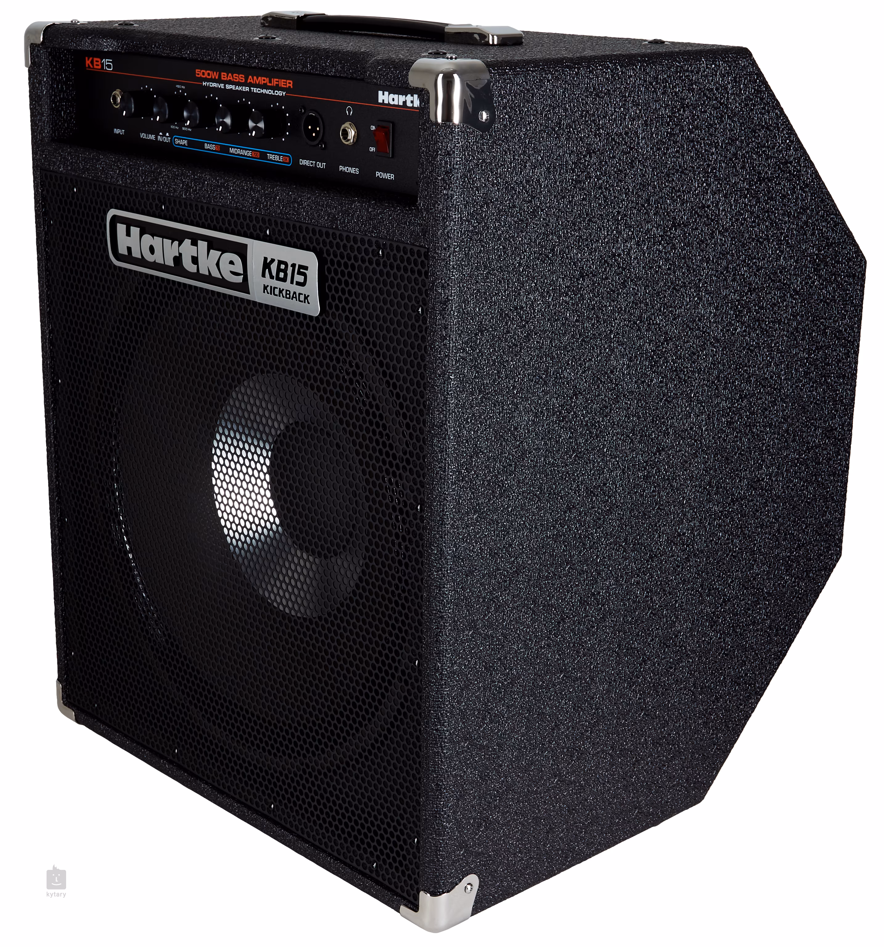 A népszerű Kickbass 15 basszusgitár-erősítő továbbfejlesztett változata, könnyített kivitelben és nagy teljesítménnyel, amelynek belsejében most már a szabadalmaztatott HyDrive hangszóró található. Az 500 wattos teljesítmény ellenére a KB 15 továbbra is hordozható készülék, kompromisszumok nélküli hangzással, amely minden keverékben érvényesül. A 15 hüvelykes HyDrive hangszóró hibrid kúpos hangszóróival nyűgözi le a hallgatót, amelyek alumíniumból és papírból készültek, és gyártásuk során egyetlen részletet sem hagytak figyelmen kívül. A hibrid technológia meleg hangzással és erős attackkal jellemezhető, amit a hagyományos papír basszus hangszórókkal nem lehet elérni. A ritka neodym mágnesek használatának köszönhetően a kombo könnyen hordozható marad, de a legendás Hartke attack megmarad! A meleg és szilárd hangzást a háromsávos ekvalizer és a speciális Shape gomb biztosítja. Ha aktiválva van, a frekvenciatartományt egy fix ekvalizer görbével befolyásolja, amelynek köszönhetően színesebb és harmonikusabb hangzást érhet el. A kombo állítható egyenes vagy döntött „kickback” helyzetbe, ami a színpadon irányítottabb és tisztább hangzást biztosít. A fejhallgató-kimenetnek köszönhetően kényelmesen gyakorolhat otthon is, a koncertekhez és a stúdióhoz pedig a közvetlen XLR-kimenet alkalmas. A hang sokoldalúsága és a nagy teljesítmény hordozható csomagolásban a Hartke Kickback 15 számos basszusgitáros körében népszerű.