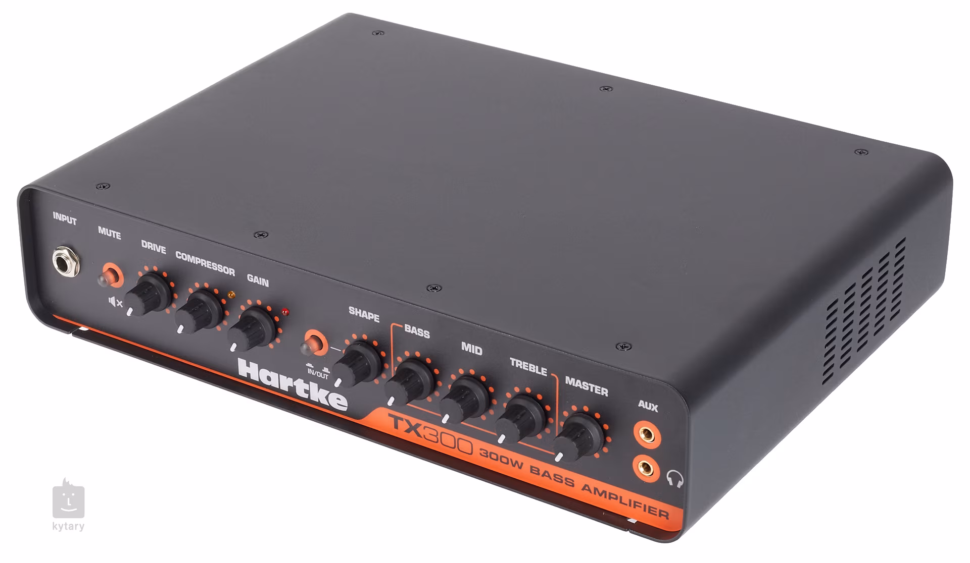 A Hartke TX300 basszusgitár erősítő különösen azoknak a játékosoknak lesz érdekes, akik a kiváló minőségű hangzás mellett maximális mobilitást is igényelnek. A mindössze 2,3 kilogrammos súlyával az egyik legkisebb erősítő a piacon, de 300 wattos teljesítménye elegendő a nagy színpadok számára. A háromsávos EQ paraméteres középtartományokkal és Shape szabályzóval ellátott EQ mellett az erősítő egy speciális torzító áramkörrel is rendelkezik Drive potenciométerrel, beépített kompresszorral és Mute kapcsolóval. Az előlapon található egy praktikus fejhallgató kimenet a csendes gyakorláshoz és egy Aux bemenet a lejátszó vagy mobiltelefon csatlakoztatásához.