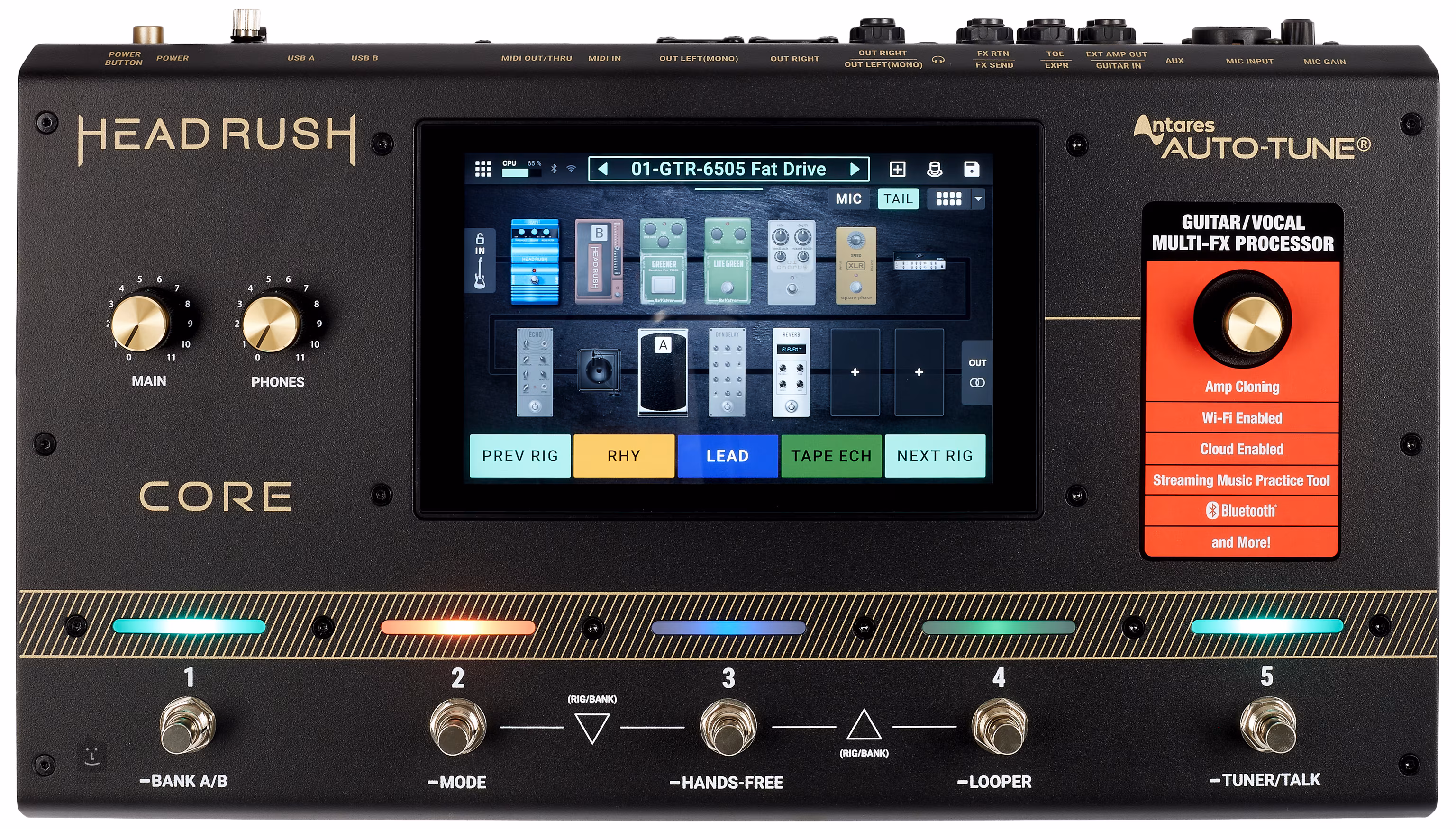 A HeadRush Core egy gitár multi-effekt és vokális effektprocesszor, amely hangzásilag valósághű gitáreffektek széles adatbázisával, hangszerek, hangszórók és mikrofonok emulációjával, gyakorlatilag korlátlan IRs felvételi lehetőségekkel, valamint az analóg effektek és hangszerek hangjának rögzítésére alkalmas "smart cloning" technológiával, amely pontosan rögzíti a hangszerek, előerősítők és gitáreffektek hangját, dinamikáját és érzetét. Az énekesek számára számos vokáleffektus áll rendelkezésre, köztük olyan klasszikusok, mint az Antares Auto-Tune és egy nagy teljesítményű looper. Az effektek és előbeállítások könyvtára folyamatosan bővül (a firmware-frissítések a fedélzeti Wi-Fi-n vagy USB-n keresztül érhetők el).