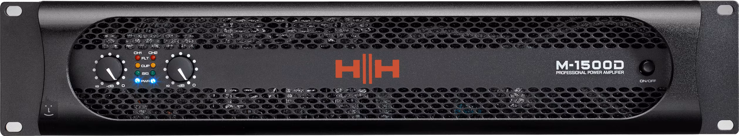 A HH M-1500D egy H osztályú kétcsatornás végerősítő 2 x 1500 W (sztereó / 4 Ohm), 2 x 1250 W (sztereó / 8 Ohm) és 1 x 2900 W (híd / 8 Ohm) teljesítménnyel.