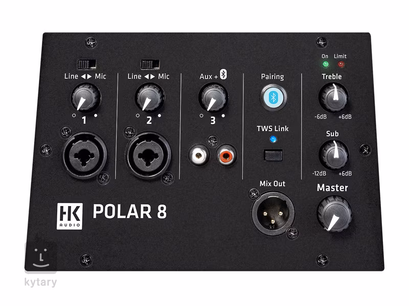 Az 1200 W-os POLAR 8 kétutas hangrendszer egy aktív 8"-os mélynyomóból és két oszlopos hangszóróból áll, amelyek összesen hat darab 2,5"-os hangszóróval vannak felszerelve. A hátsó panel rugalmas csatlakozási lehetőségekkel rendelkezik. Lehetőség van a beállítások mobilalkalmazáson keresztül történő vezérlésére is (a csatlakozás Bluetooth-on keresztül történik).