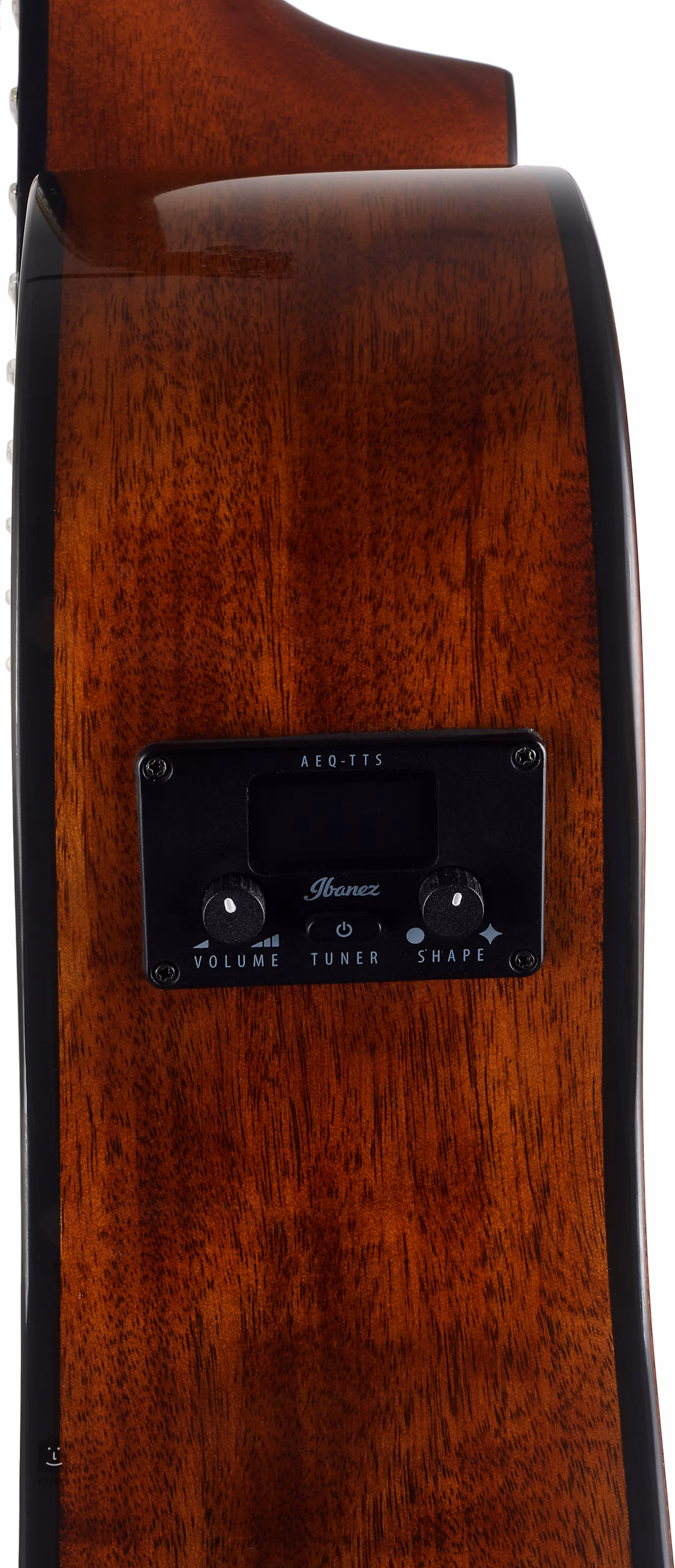 A nyilvános előadáshoz vagy zenekarral való játékhoz elegendő hangerőt az Ibanez AEQ-TTS elektronika biztosítja a gitár búrájába épített integrált hangolóval és egy alulblokkolt piezo hangszedővel. A húrokat krómozott Die-Cast hangológépek és egy diófa fogólap fogja közre. Az Ibanez Advantage fejidomban elhelyezett fogantyúi a standard modellekhez képest előnyöket kínálnak a könnyű kezelhetőség és a húrok szilárd rögzítése szempontjából. A műszer jóképű kialakítását a fekete-fehér díszítés és a rozetták hangsúlyozzák, amelyek kontrasztban állnak a karosszéria színével.