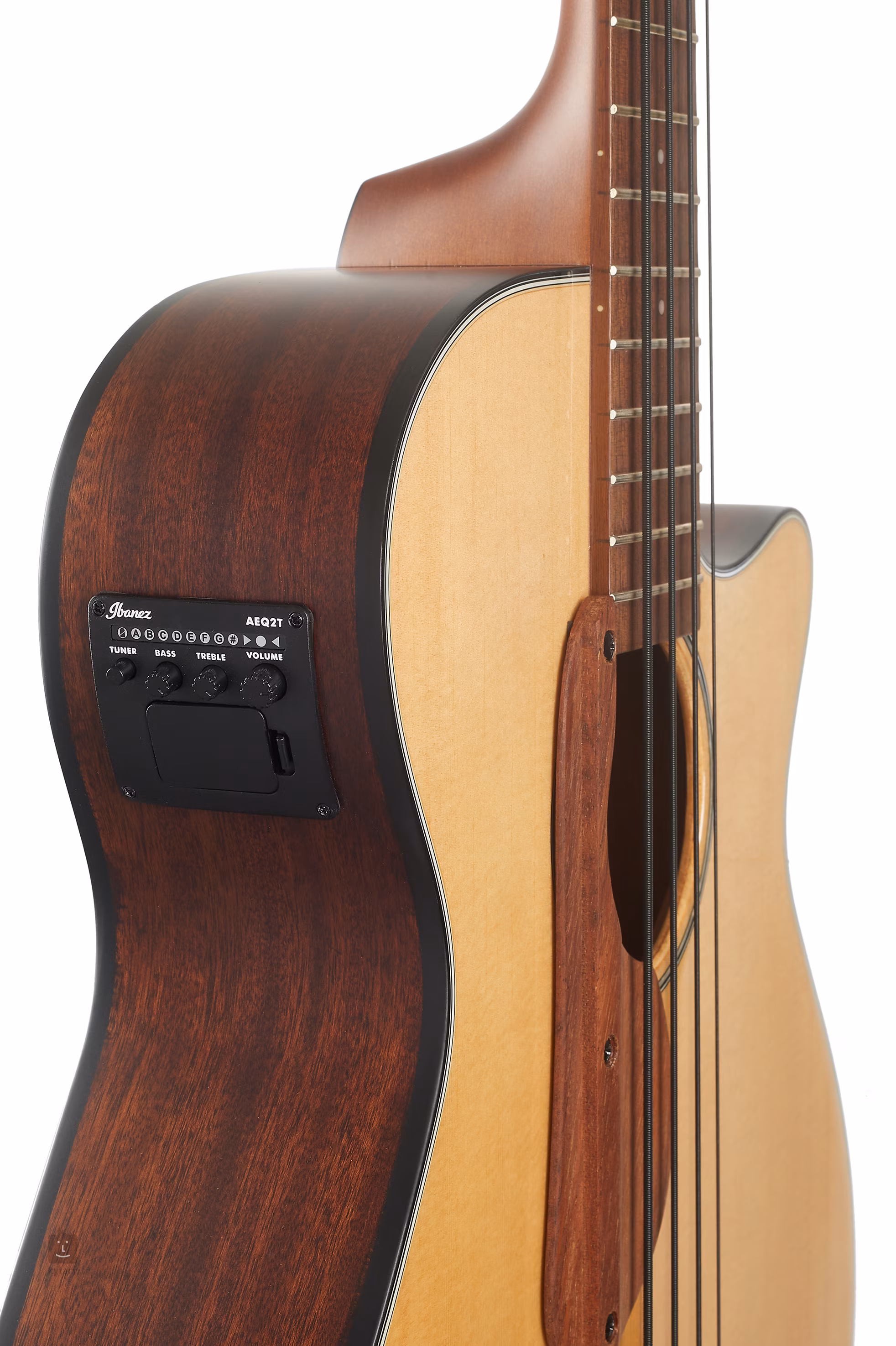 Az Ibanez AEGB30E Natural egy elektroakusztikus basszusgitár keskenyebb, 95 mm mély testtel, modern single-cut kivitelben, amely egyenesen hívogat az élő játékra - akusztikusan és a berendezéshez csatlakoztatva egyaránt. A hangszer elülső része laminált lucfenyőből, míg a hátlap és az oldalak laminált sapeléből készültek, amely egy a mahagónihoz hasonló megjelenésű és tulajdonságú fa. Értékelni fogja a finom alkarvédő kontúrját is. A huszonegy fogólappal ellátott rózsafa fogólapot egy háromrészes juhar és nyatoh nyakra ragasztották.