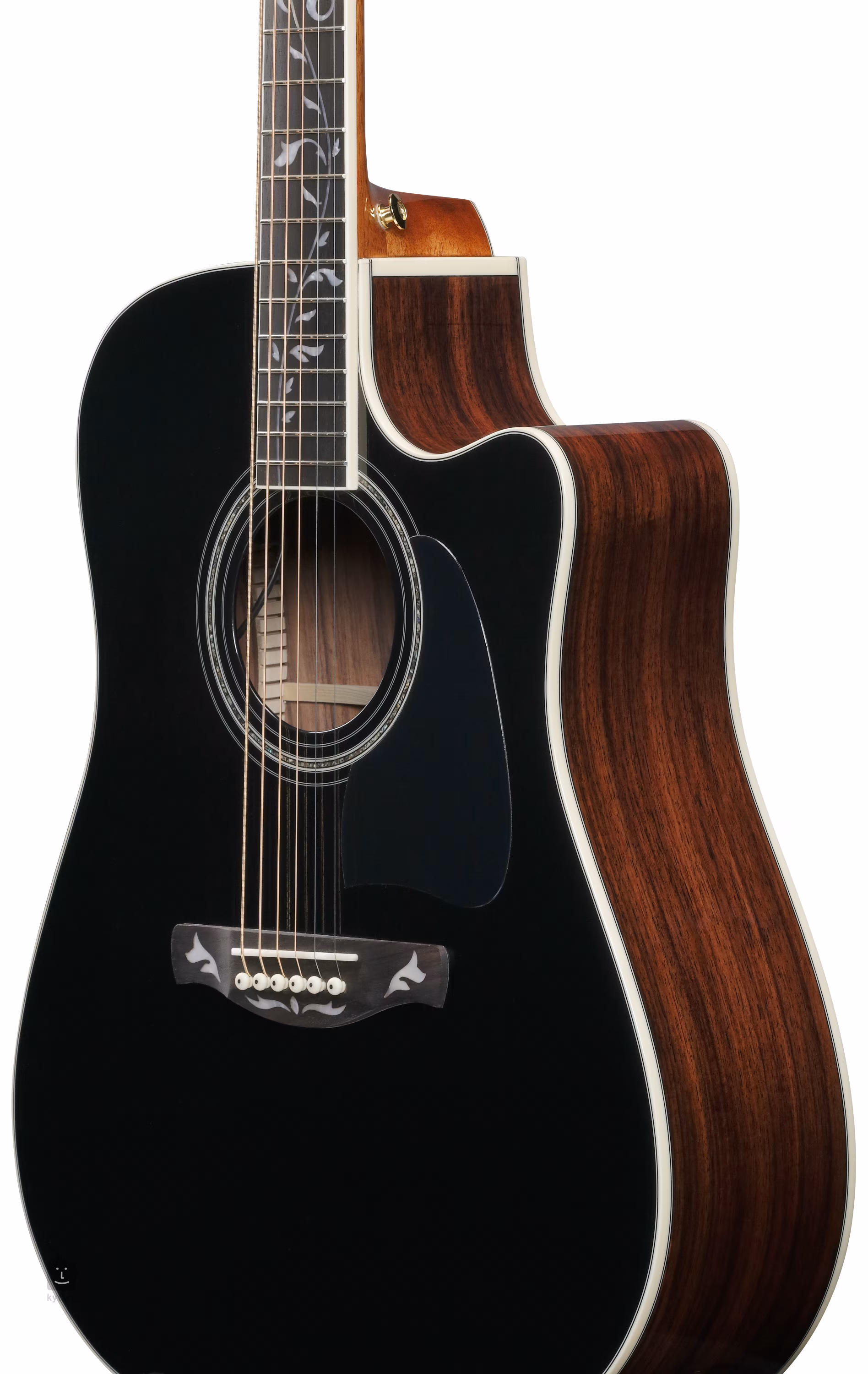 A Dreadnought AW391RCE Black Top elektroakusztikus gitár előlapja tömör Sitka lucfenyőből, míg a hátlap és az oldalak laminált paliszanderből készültek. A rózsafa szemcsézettségét a fényes lakkozás hangsúlyozza. Az afrikai mahagóni nyakra egy 20 bunddal ellátott rózsafa fogólap van ragasztva. A fogólapot és a fejlécet a Steve Vai signature modelljeiről és más Ibanez gitárokról ismert Tree of Life intarzia díszíti.