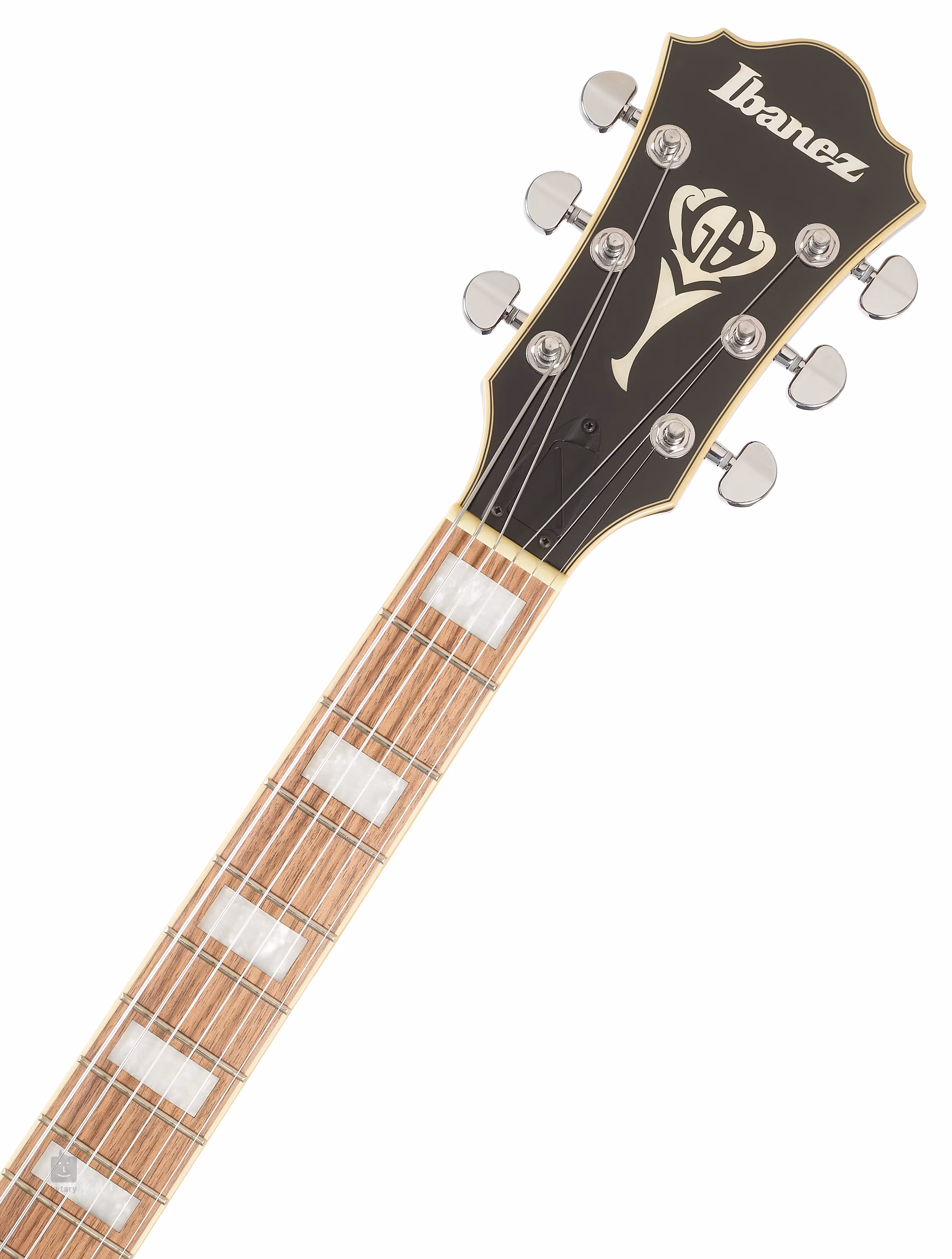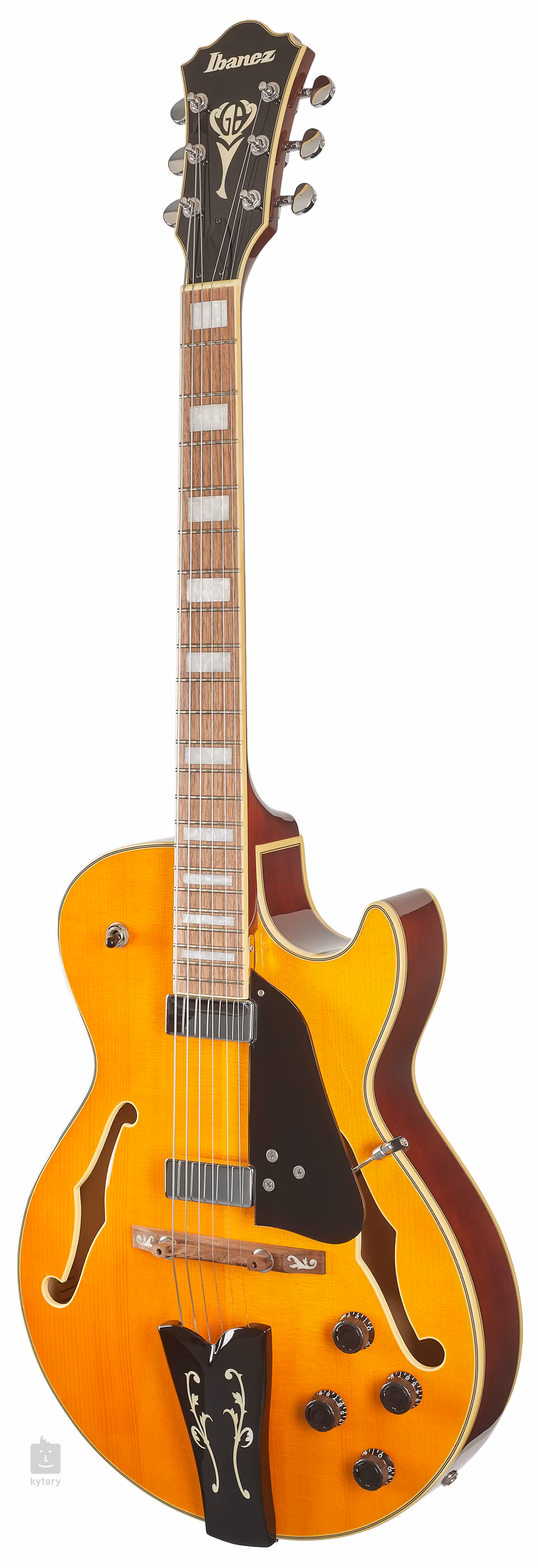 A húrok a gyártó saját hangolóműveiben vannak rögzítve, és az állítható paliszander húrtartón keresztül a húrtartóban. A szép kivitelezést többrétegű testszegély, krómozott hardver, fekete pickguard és hagyományos F-lyukak hangsúlyozzák.