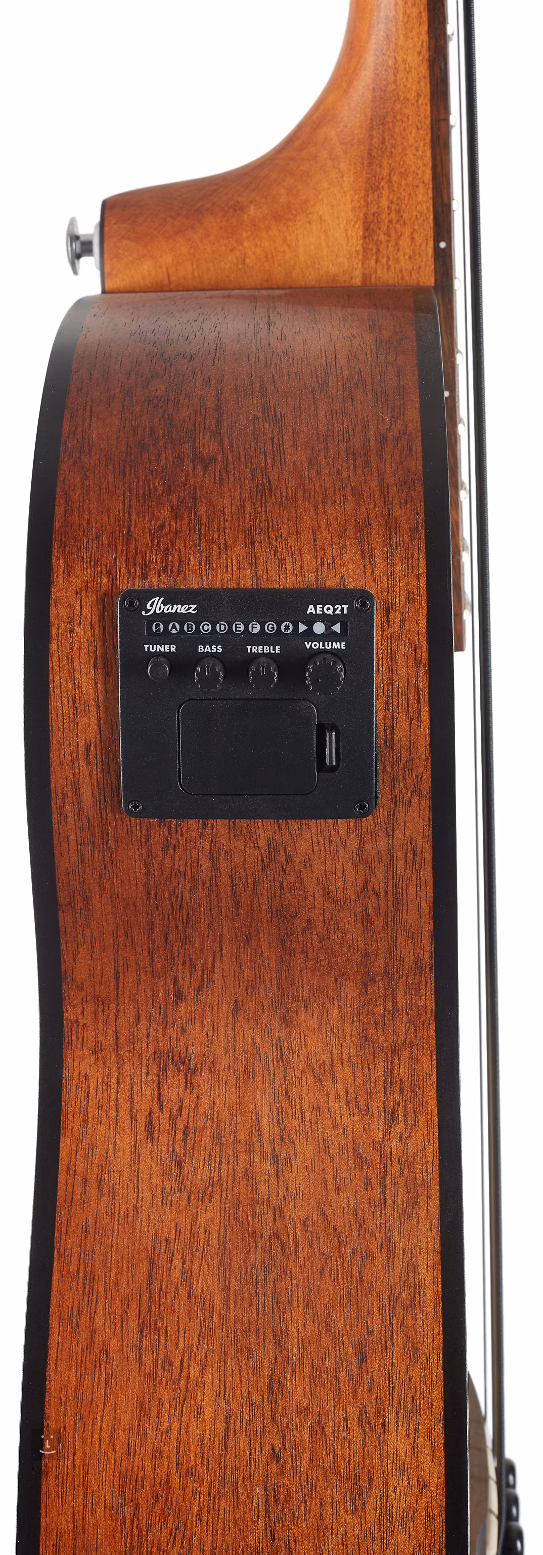 Az akusztikus hang erősítéséről egy Ibanez sub-coil hangszedő és a hangszer hátuljában található AEQ-2T elektronika gondoskodik, beépített hangolóval és kétsávos equalizerrel. A húrok a cég krómozott, öntött mechanikájába és nandu fa fogólapjába vannak szerelve. A stílusos kivitelezést a teknőspáncél-utánzatú gyűrűs rozetta, a fekete koptató és a nyitott pórusú kivitel hangsúlyozza, amely kiemeli a fa természetes textúráját.