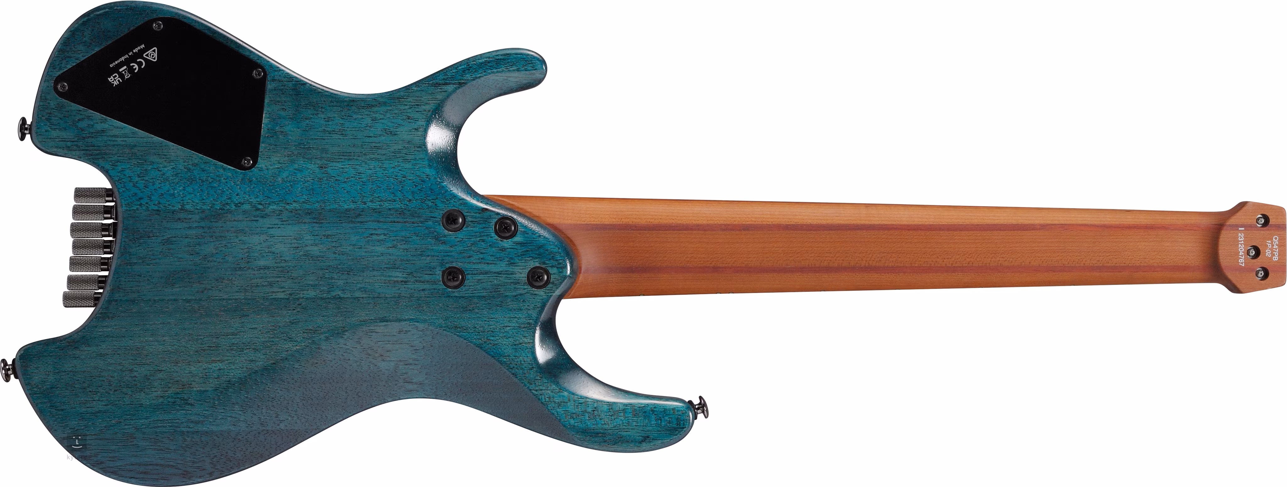 A héthúros Q547PB COL nyatoh fa teste nyárfa burl fedőfurnérral és Cosmic Blue Low Gloss fényezéssel rendelkezik. Az öt darabból álló, hőkezelt (vagy ha úgy tetszik, sütött) juhar és egzotikus bubinga nyak egy oltott juharból készült (szintén hőkezelt) fogólapra van ragasztva, amely huszonnégy jumbo rozsdamentes acél bunddal van ellátva. A fogólapon való tájékozódást gyöngyház pozíció és oldalsó lumineszcens pontok könnyítik meg, amelyek még szürkületben is tökéletes áttekintést nyújtanak a fogólapon történő mozgásról.