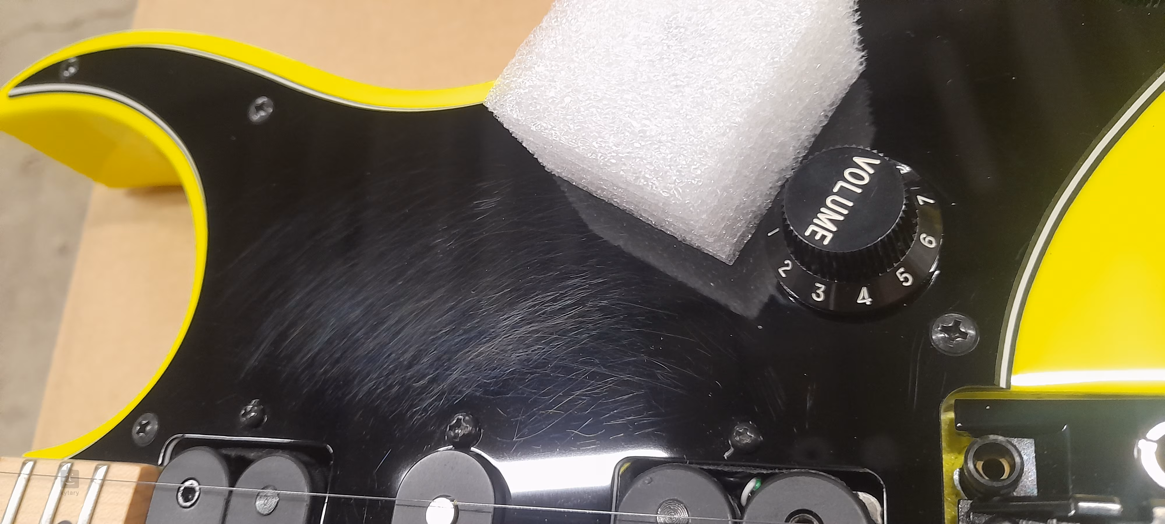 A két Vintage 7 és 8 passzív humbucker (a DiMarzio által tervezett és az Ibanez által gyártott) kombinációja a híd és a nyak pozícióban S1 single-coil hangszedőkkel a gitár hangzásbeli egyensúlyát és a kristálytiszta hangoktól a hi-gain torzításig terjedő hangszínpalettát biztosítja. Egy ötállású kapcsolóval lehet váltani közöttük. A húrokat az egyik oldalon fekete hangológépekbe, a másikon pedig egy dupla fordulatú Edge tremolóba szerelték, amellyel lenyűgöző hanghatásokkal díszítheti játékát. A nulladik bundon lévő reteszek garantálják a hangolás stabilitását a tremolókar gyakori használata esetén. A fekete koptatóvédő megvédi a hangszer festését a pengető okozta karcolásoktól.