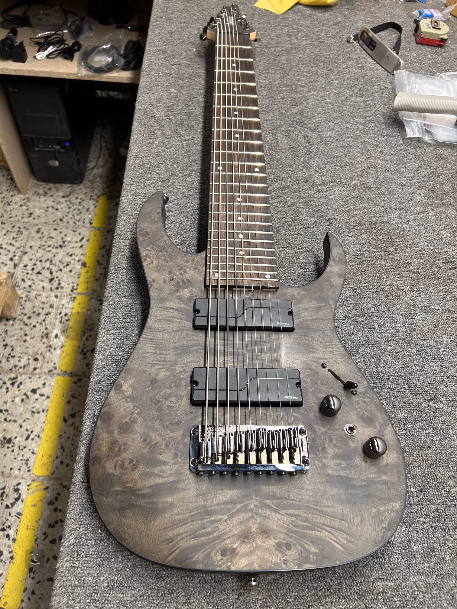 Az RG9PB-TGF kilenchúros gitár teste tömör nyatohfából és nyárfa-nyárfa furnérral borított tetejéből készült. Az ötrészes, Wizard-9 profilú juhar- és diófa nyak egy makassari ébenfa fogólaphoz van csavarozva, amely huszonnégy jumbo-méretű bunddal van felszerelve. A kilenc húrhoz a hangszer hosszabb (712 mm) húrmérete párosul.