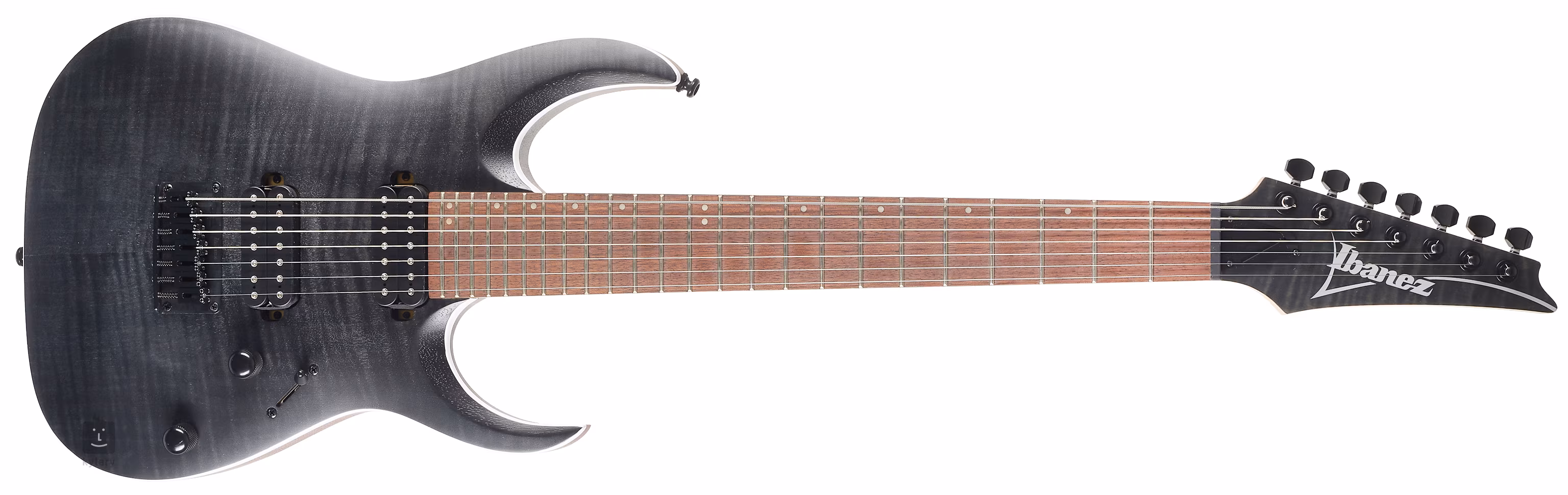 A héthúros RGA742FM-TGF modell teste merantiból és látványos, lángolt juharfából készült fedőfurnérból készült. A huszonnégy jumbo-méretű bundokkal ellátott jatoba fogólapot egy Wizard II-7 profillal ellátott gyors juhar nyakra ragasztották.