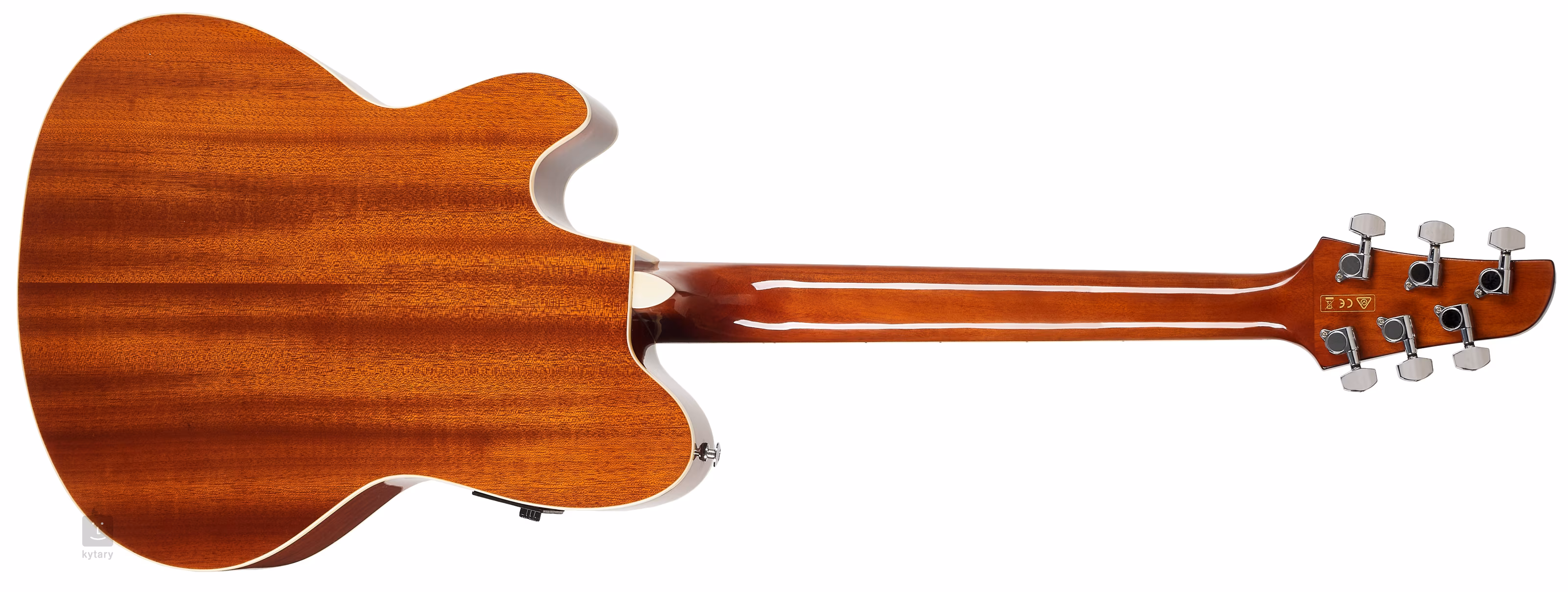 A gitár eleje figurált kőrisből készült, menő mintázattal, az oldalak és a hátlap sapeléből. Az okoumé nyakra egy 20 bundos lilaszív (amarant) fogólap van ragasztva.