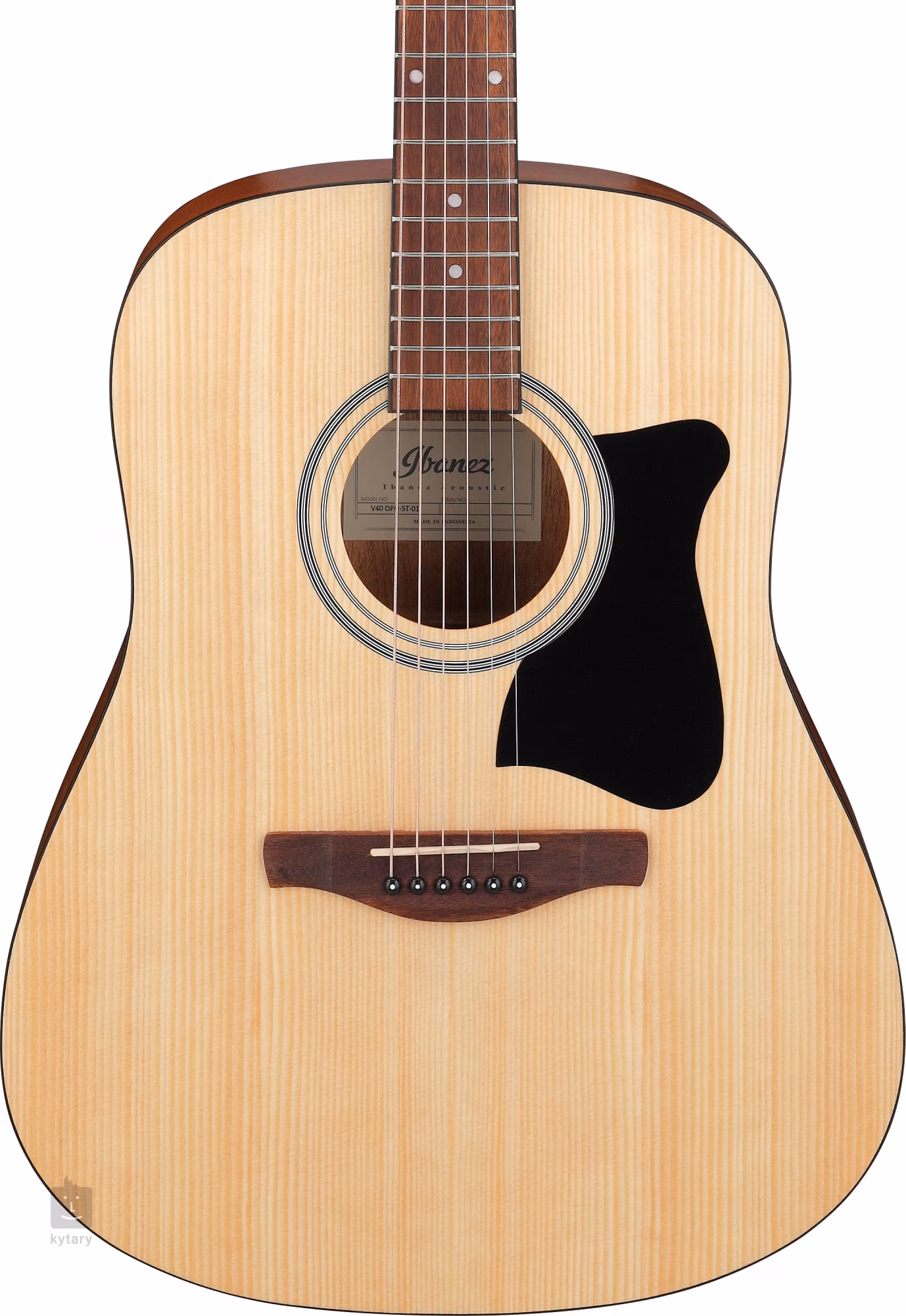 A V40-OPN akusztikus gitár előlapja laminált lucfenyőből, míg a hátlap és az oldalak laminált merantiból készültek. A meranti nyak 20 bundos nandu fogólapra van ragasztva. A fogólapon található fehér pozíciós pontok megkönnyítik a tájékozódást.
