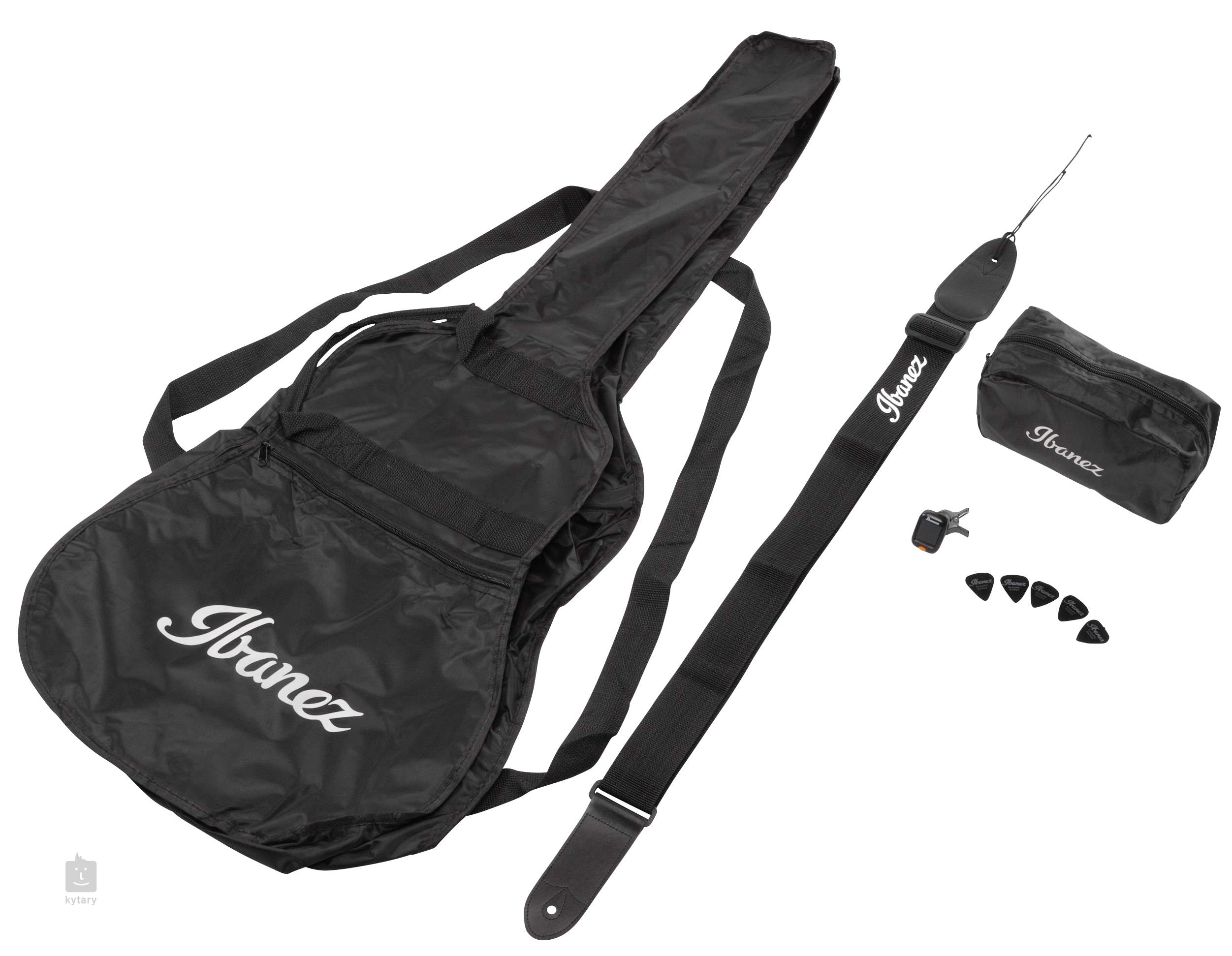 Az Ibanez V50NJP-OVS akusztikus gitár kezdőcsomagja tartalmaz egy koncert-táskát, egy felcsatolható hangolót, egy gitárszíjat, egy tartozéktáskát és pengetőket.
