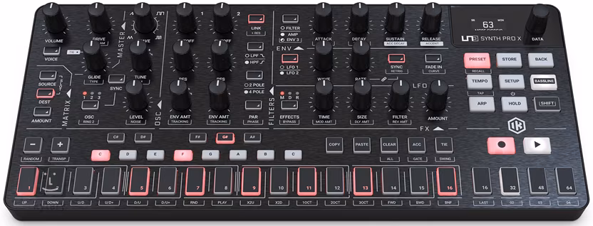Az UNO Synth Pro X 64 lépéses szekvencerrel, arpeggiátorral és modulációs mátrixszal rendelkezik, amely lehetővé teszi a felhasználók számára, hogy összetett és egyedi hangzásvilágokat hozzanak létre. Beépített effektjeivel, köztük a delay, a moduláció és a reverb segítségével teljes és gazdag textúrák hozhatók létre. A könnyen hozzáférhető vezérlők és a kezelőfelület gyors és intuitív programozást tesz lehetővé, így az UNO Synth Pro X egyaránt alkalmas kezdők és tapasztalt szintetizátorvirtuózok számára.