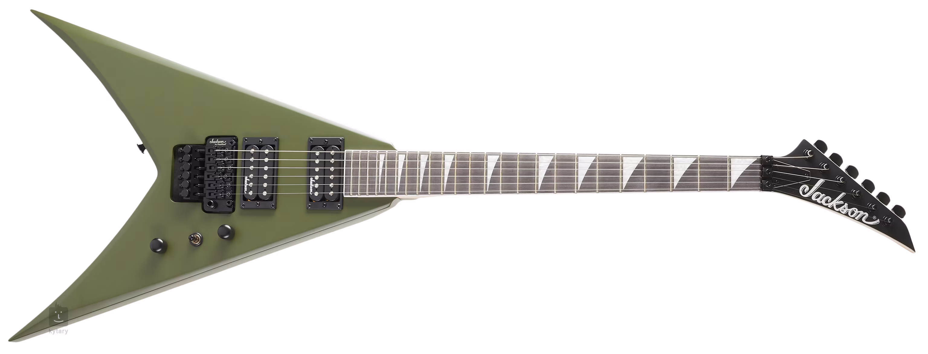 Két saját fejlesztésű humbucker kerámia mágnessel és nagy kimeneti jeladóval adja a gitárnak a metál- és rockzenében oly szükséges lédús hangzást. A hangerő-potenciométerek, a hangszínszabályozók és a háromállású hangszedő kapcsoló a hangzásbeli beállításokra szolgálnak. A húrok a cég die-cast hangológépében és egy licencelt Floyd Rose dupla fordulatú tremolóban kaptak helyet, amellyel lenyűgöző hanghatásokat adhatsz a játékodhoz. A hangolás stabilitását a kar gyakori használata során a nulla bundon lévő zárak garantálják. A gitár stílusos megjelenését a Matte Army Drab testszínű kivitel és a fekete hardverek hangsúlyozzák.