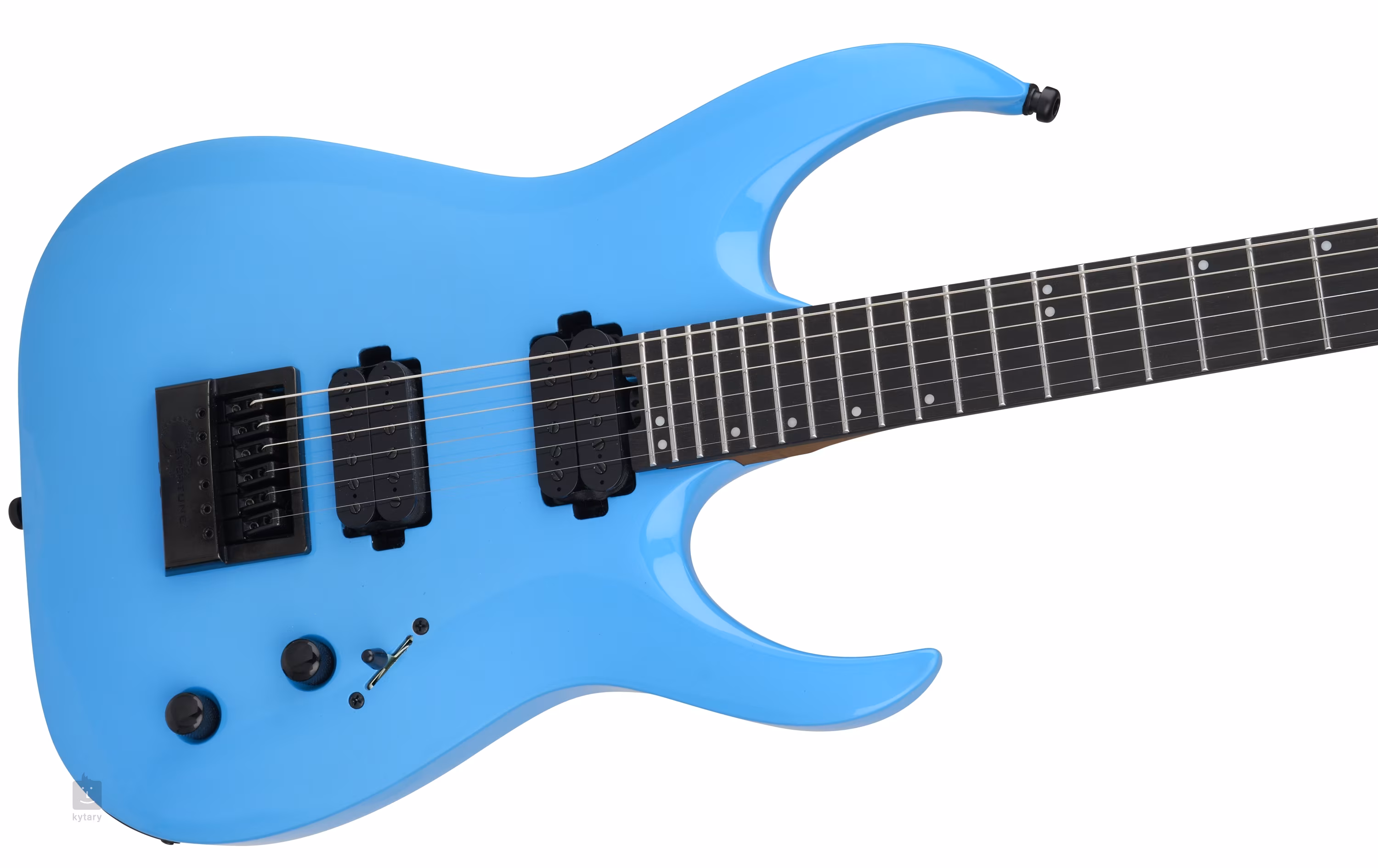 Az amerikai Jackson márka Pro Series sorozata professzionális minőségű elektromos gitárokat kínál aktív zenészeknek és a széles zenei közönségnek egyaránt. A Juggernaut gitárok eredeti dizájnja Misha Mansoorral, az amerikai djent zenekar Periphery tagjával együttműködésben jött létre. A Pro Plus Misha Mansoor Juggernaut EB RBL signature modell tölgyfa testét fényes Riviera Blue színű bevonat díszíti. A hőkezelt juharfa (caramelized maple) nyakhoz, amely grafit merevítéssel van ellátva, ébenfa fogólap van ragasztva, amelyen 24 darab Jumbo méretű rozsdamentes acél fogólap található. A lapos fogólap-sugár (20 hüvelyk) és a fogólap lekerekített élei egyértelmű előnyt jelentenek a gyors játékosok számára. A fogólapon való orientációt sötétben is megkönnyítik az eltolt pozíciós pontok és az oldalsó lumineszcens jelölések. A két Jackson MM1 signature humbucker kiegyensúlyozott hangzást és a kompromisszumok nélküli metal riffek, dallamos szólók vagy akkordok megszólaltatásához szükséges dinamikát biztosít a hangszernek. A hang kontúrjait a hangerő-szabályzóval, a hangszínszabályzóval és az ötállású hangszedőkapcsolóval állíthatja be. A hangszínszabályzó Push/Pull funkciója nem a humbucker tekercsek hagyományos felosztására szolgál (ezt a kapcsoló 2. és 4. állása biztosítja), hanem a potenciométer bypassolására. A hangolás stabilitását és a jó intonációt a húrok rögzítése a gyártó saját, zárható die-cast mechanikáiban és az Evertune húrtartóban biztosítja, amely kompenzálja a húrok húzását és az élesebb játékot, így biztosítva, hogy a gitár minden körülmények között hangolva maradjon. A gitár tokban (gig bag) kerül forgalomba. Az amerikai Jackson márka elektromos gitárjai már több évtizede elsősorban a metal, metal/core, HC vagy djent zenekarok zenészeit vonzzák, akik a hangos hangzást kedvelik, többé-kevésbé agresszív behatással, amit a cég zenészeinek listája is alátámaszt.