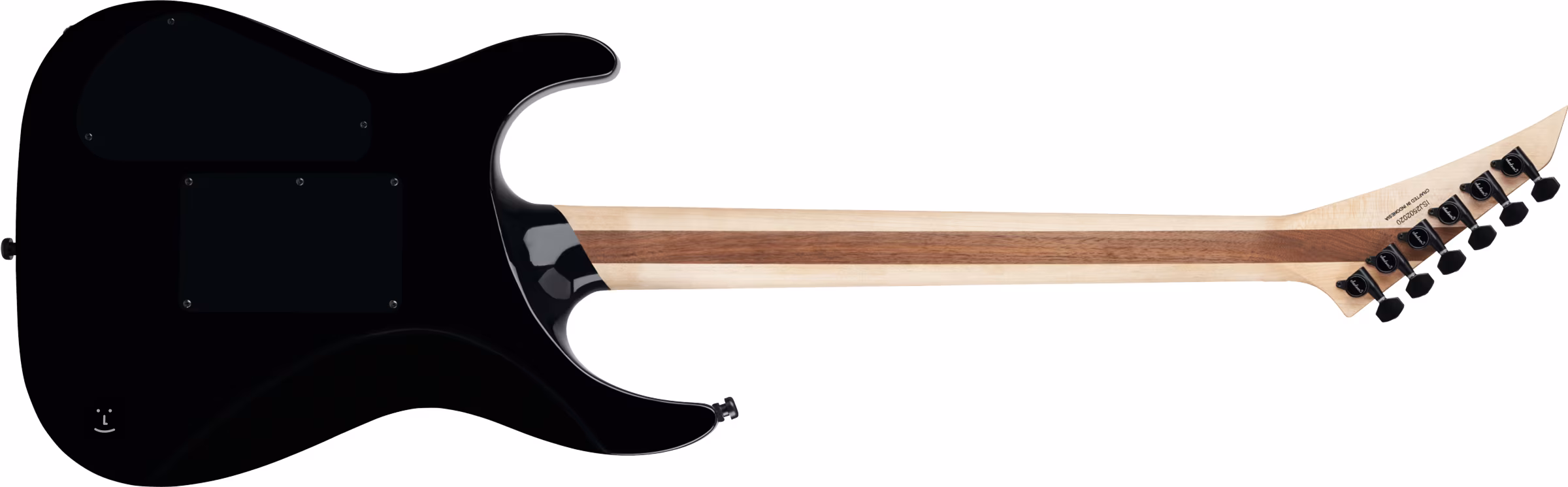A Jackson Pro Plus Series Soloist SLA2 EBY Gloss Black elektromos gitár felépítése egy ergonómikusan kialakított nyatohfa testből és egy három darabból álló, grafit merevítéssel megerősített juhar- és diófa nyakból áll. Ez a megoldás kedvezően hat a hangszer sustainjára. Az ébenfa fogólap 24 darab rozsdamentes acélból készült jumbo méretű bunddal van ellátva.