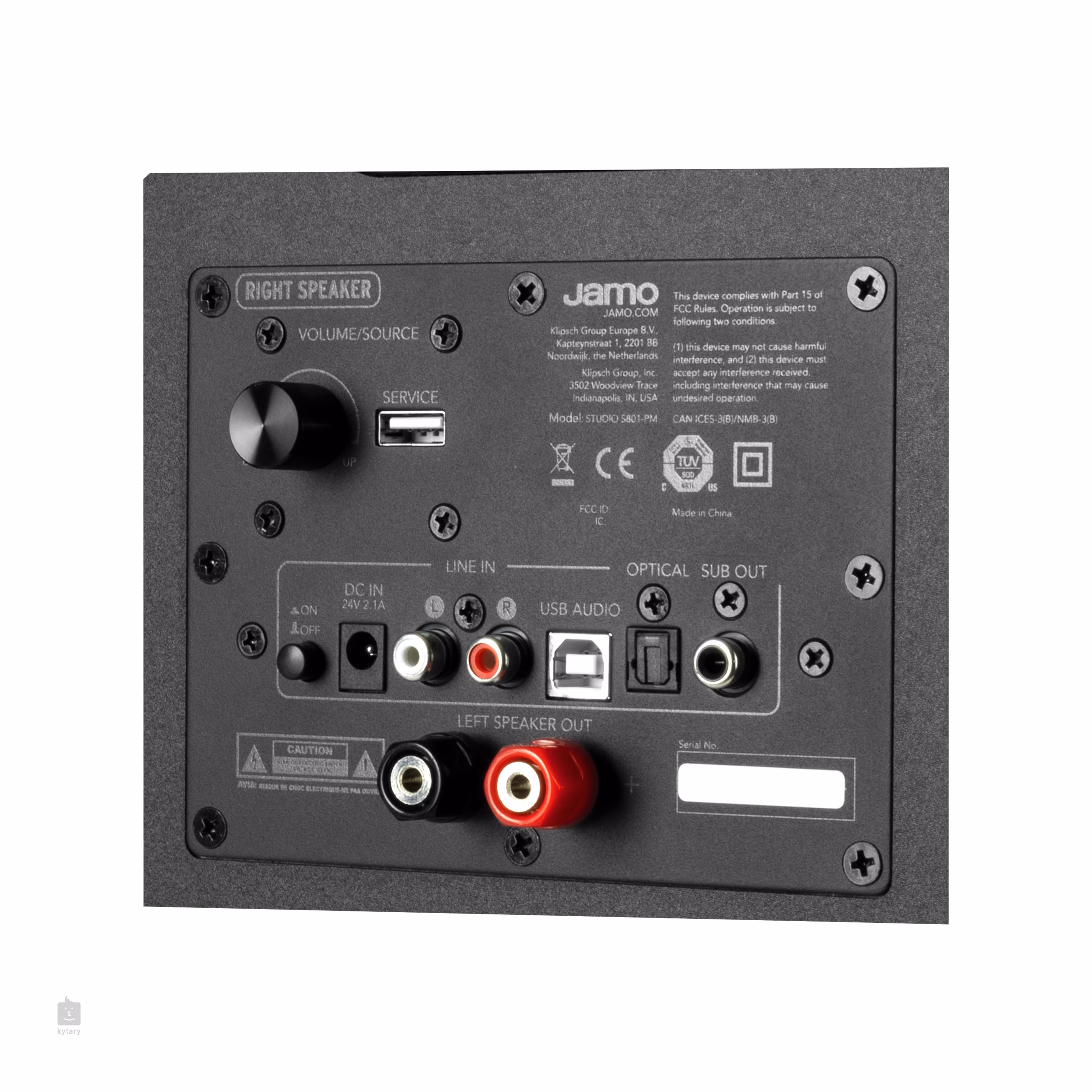 A Jamo S 801 PM a Studio 8 sorozat egyetlen aktív hangszórója, amely Bluetooth vezeték nélküli technológiával csatlakoztatható számítógépekhez, TV-készülékekhez vagy okostelefonokhoz. Egy 4"-os mélysugárzóval és egy 1"-os magassugárzóval rendelkezik, így maximális teljesítménye akár 120 W. A hátlapon rugalmas csatlakozási lehetőségek találhatók RCA, optikai csatlakozó, USB, mélysugárzó kimenet vagy egy második hangszóróhoz csatlakoztatható kimenet formájában. A hangszórókat ezután egy mágneses rács védi. A csomag tartalmaz egy hangszórókábelt, egy USB-kábelt, egy optikai kábelt és egy távirányítót.