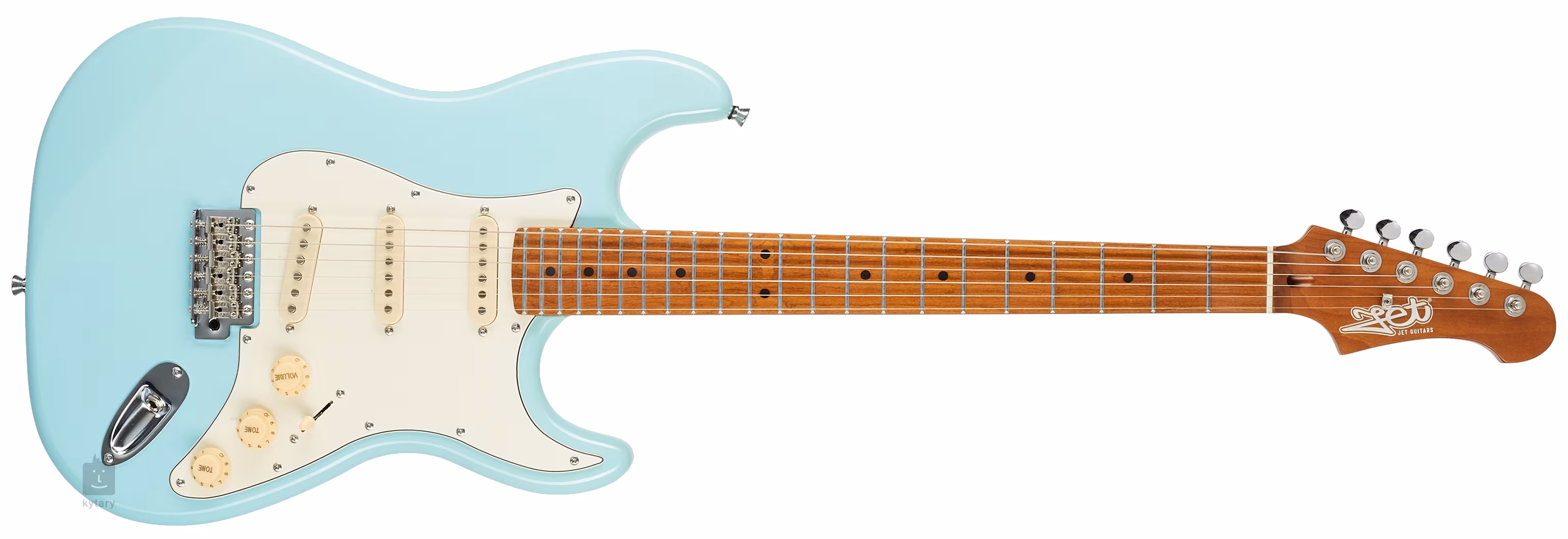 A JET JS-300 BL egy elektromos gitár, amely a ST modellek dizájnját, kivitelezését és hagyományos elemeit kínálja megfizethető áron. A hangszer hársfa testét fényes lakk borítja. A kanadai juharfából készült, csavarozott nyak és a hangszer fogólapja hőkezelésen esett át, ami stabilabbá teszi a fát, és egyúttal olyan megjelenést/aurát kölcsönöz neki, mintha már évek óta játszottak volna rajta. A három single-coil hangszedő biztosítja a gitárnak a hagyományos ST modellek hangzását és ütőerejét. A hang karakterét a hangerőpotméter, a két hangszínszabályzó és az ötállású hangszedőkapcsoló segítségével lehet alakítani. A húrok a csontból készült nulladik fekvésen keresztül vannak rögzítve a krómozott hangolókulcsokhoz és a szinkronizált tremolóhoz. A gitár stílusos megjelenését a világos pickguard hangsúlyozza. A viszonylag új Jet Guitars márka megfizethető áron kínál elektromos gitárokat hagyományos formatervezéssel, színekkel és kivitelekkel.