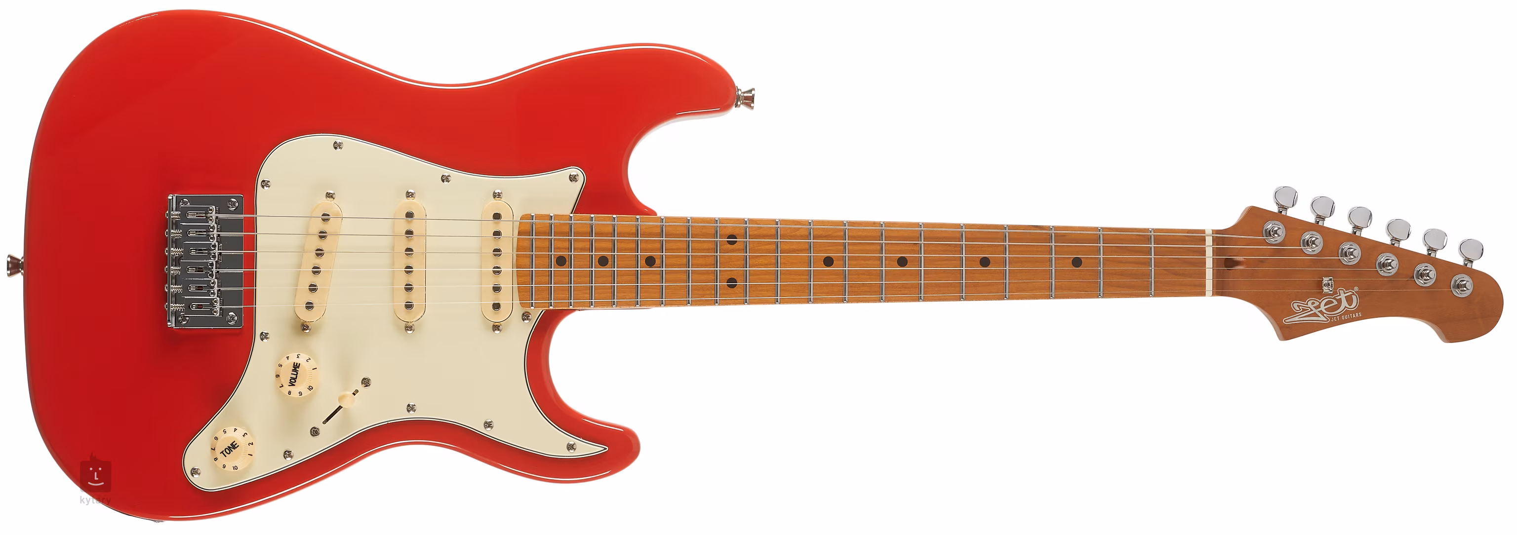 Három kerámia mágnessel ellátott single-coil hangszedő adja a gitárnak az ST modellek hagyományos érzetét és ütőerejét. A hangzás karaktere a hangerő-potenciométerekkel, a hangszínszabályzóval és az ötállású hangszedő kapcsolóval alakítható. A húrokat krómozott hangolómechanizmusok és masszív fogólap rögzíti - nem kell tremolóval megnehezíteni a gyerekek életét. A szép kivitelezést a hagyományos pickguard és a Jet Guitars logó hangsúlyozza a fejlécen.