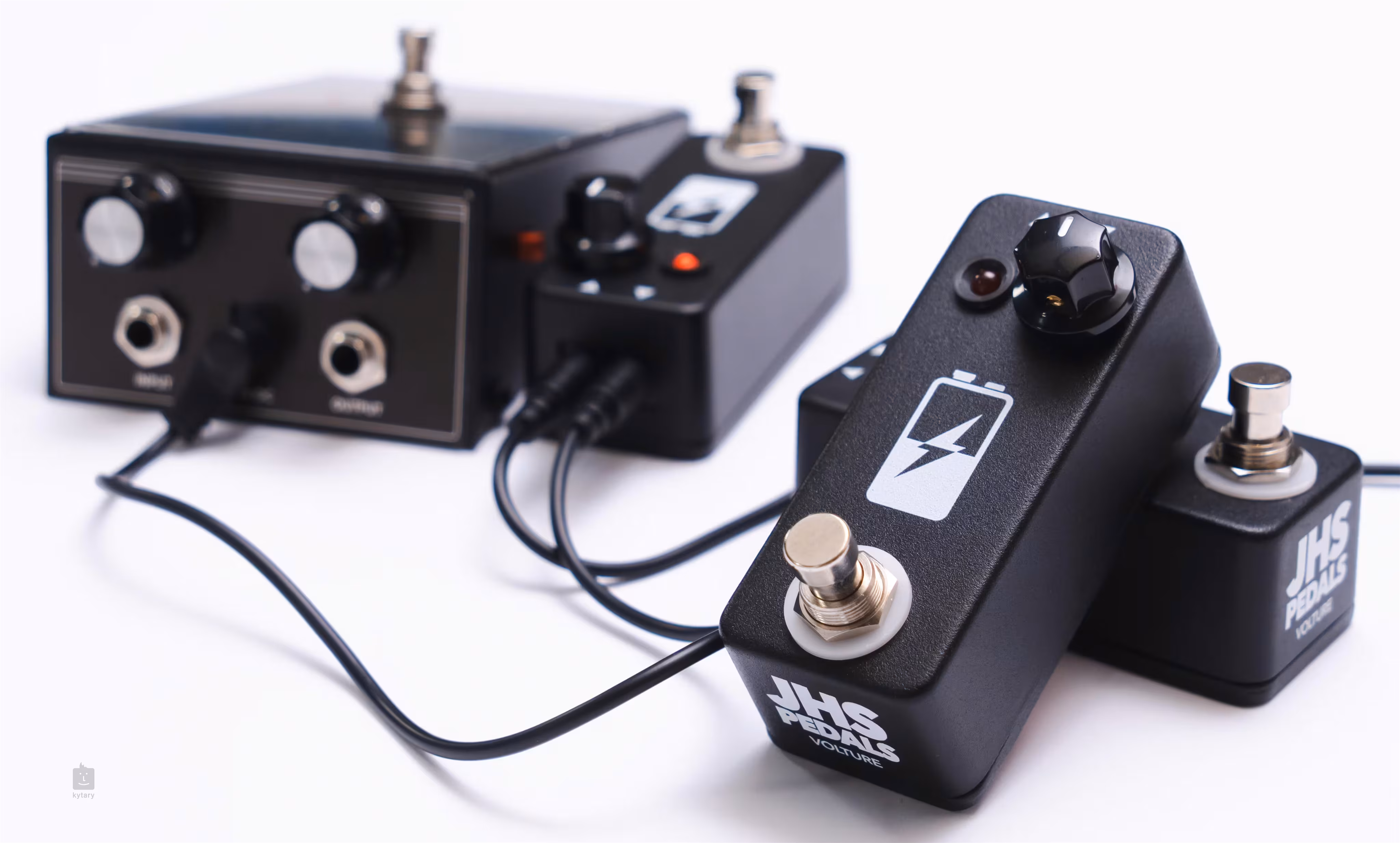 A JHS Pedals-tól származó Volture egy praktikus kis kiegészítő a fuzz és torzító effektekhez, amely egy haldokló akkumulátor jellegzetes hangját szimulálja. Az 1960-as évek óta, amikor az első fuzz effektek megjelentek a piacon, a gitárosok próbálták kitalálni, hogyan lehet elérni a tökéletes fuzz hangzást. A gitárosok fagyasztóba tették a fuzz pedálokat, hogy lehűtsék a tranzisztorokat, a felismerhetetlenségig finomhangolták az effekteket, és végül rájöttek, hogy az ideális megoldás egy majdnem lemerült akkumulátor használata - mivel a fuzz áramkörök rendkívül érzékenyek a kapott feszültség mennyiségére, így a feszültségek bármilyen változása drámaian eltérő hangkaraktert eredményez.