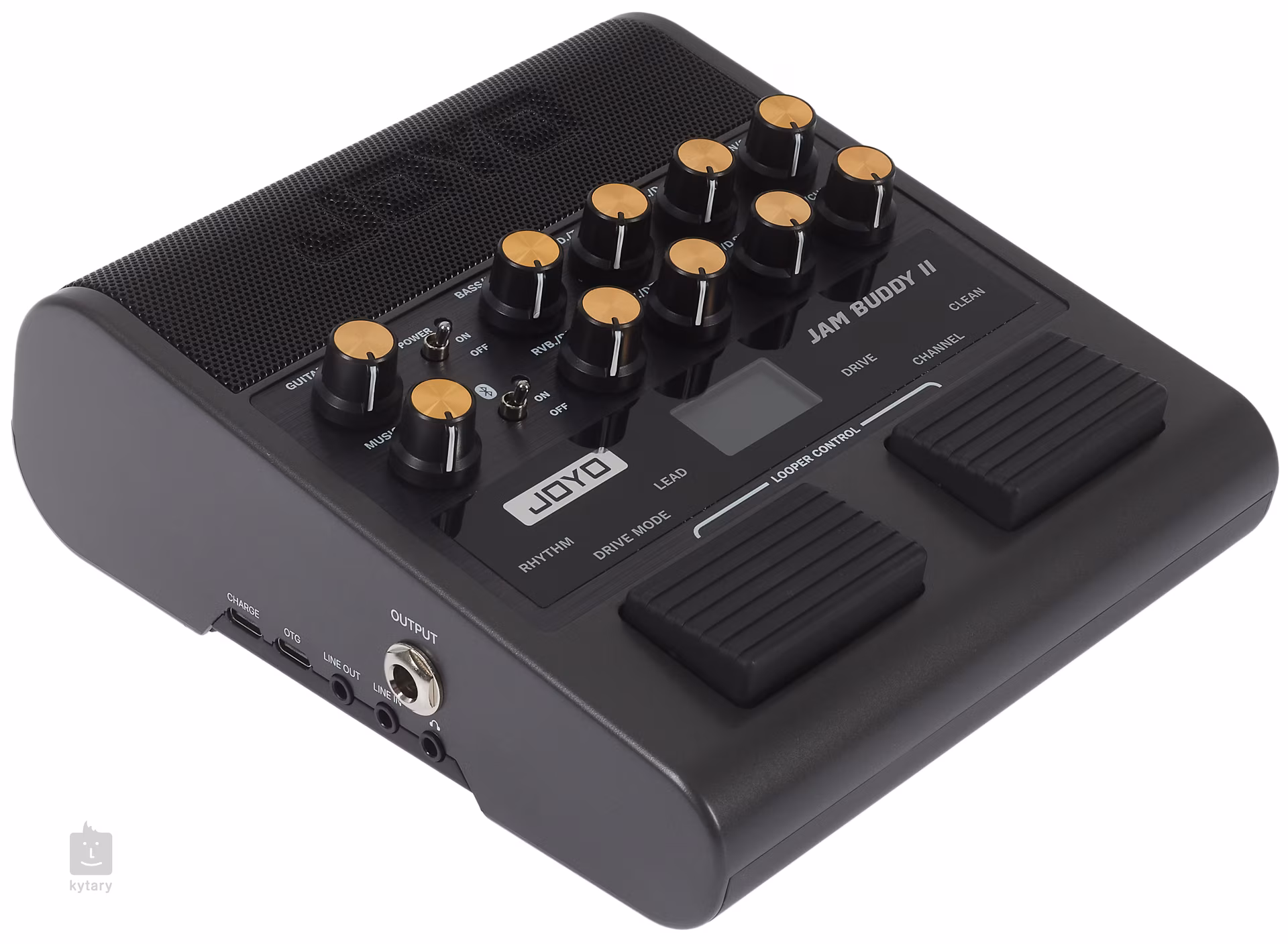 AJoyoJam Buddy II egy ultrakompakt gitármodellező kombó pedalboard formátumban, amely kiválóan alkalmas otthoni gyakorlásra, csendes játékra fejhallgatóval, vagy bármilyen zenei kísérettel való jammelésre. A kombó két 8 W-os hangszóróval van felszerelve a hűséges hangvisszaadás érdekében. Összesen három csatornával rendelkezik: Clean, Rhythm és Lead a tiszta, finoman torzított vagy agresszív magas hangzáshoz. Minden bluesos, rocker és metálos élvezni fogja. A kombó 14 legendás gitárerősítő szimulációjával is fel van szerelve, amelyek további hangzásbeli színezéseket kínálnak.