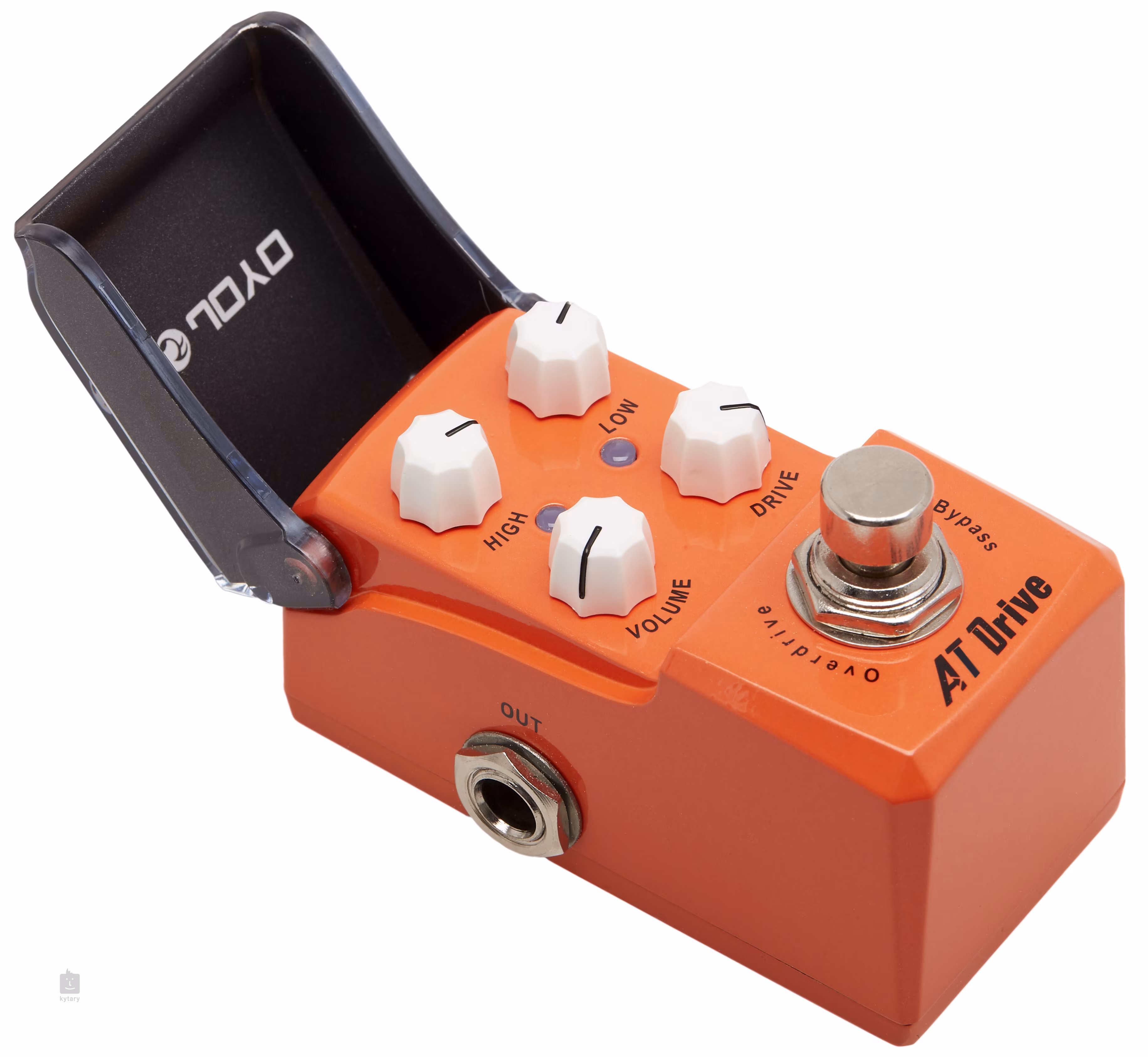 A Joyo JF-305 AT Drive egy olyan gitáreffekt, amely szép blues/rock overdrive-ot ad, és még teljesebbé teszi a gitárhangzást. A hangzás a hangerő, a torzítási szint és a kétsávos EQ (treble, bass) potenciométerek segítségével alakítható. A doboz true bypass üzemmódban működik, tehát kikapcsolva semmilyen módon nem befolyásolja a továbbított jelet. A tápellátás 9V-os adapterrel történik.