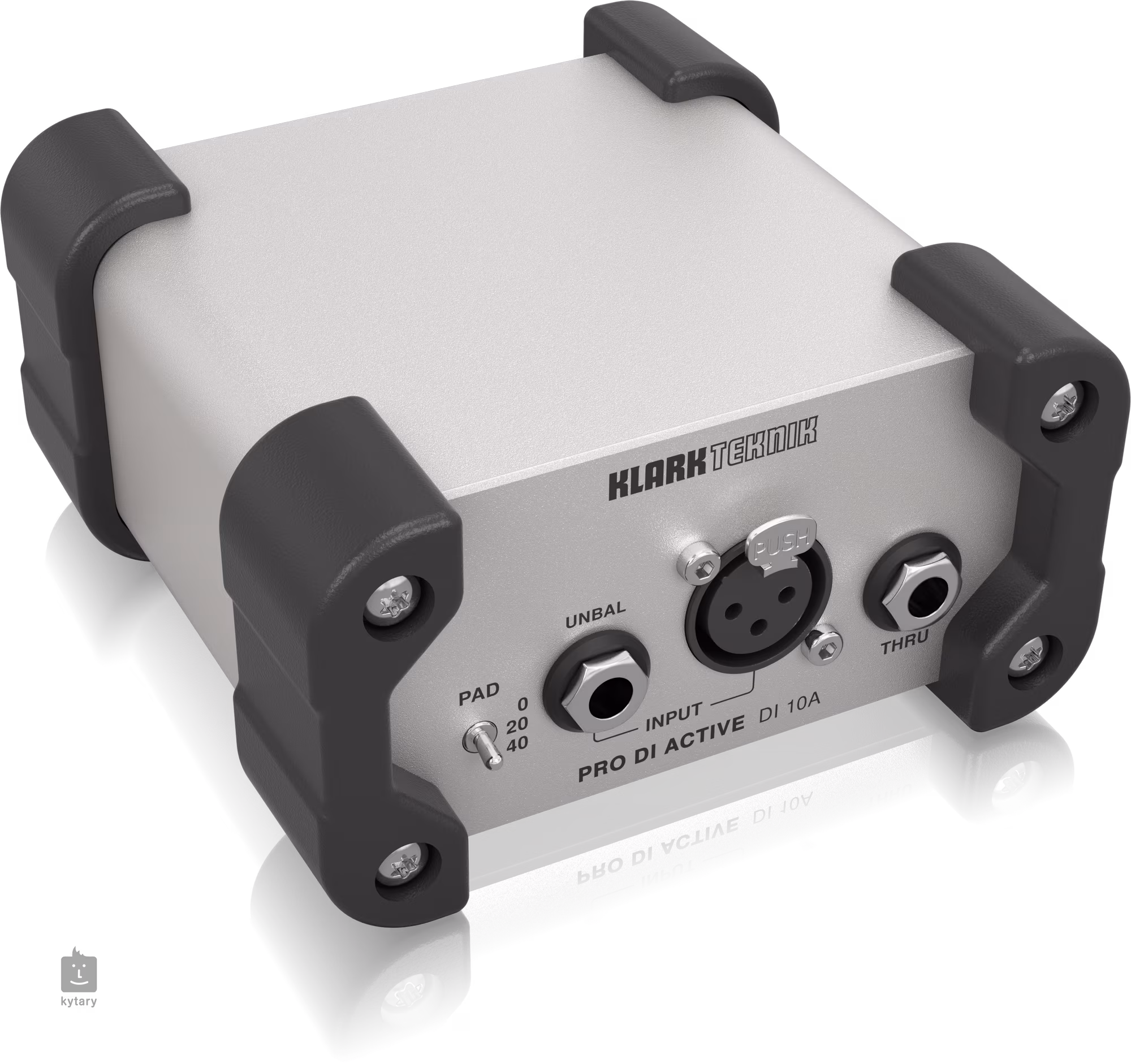 A KLARK TEKNIK DI 10A egy aktív DI-doboz 48V-os fantomtáp vagy akkumulátortáp (nem tartozék), kiváló minőségű 6,3 mm-es TRS jack és XLR Neutrik csatlakozók, kapcsolható bemeneti csillapítás a hangszer/készülék jelszintjéhez, Midas transzformátorok a maximális jelintegritás érdekében, kapcsolható földelés és alumínium ház.