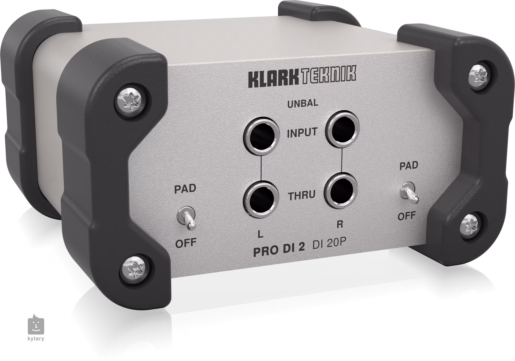 A KLARK TEKNIK DI 20P egy passzív sztereó DI doboz két 6,3 mm-es jack bemenettel, két 6,3 mm-es THRU csatlakozóval és két XLR kimenettel, kapcsolható bemeneti csillapítással a hangszer/készülék jelszintjéhez, Midas transzformátorokkal a maximális jelintegritás érdekében, kapcsolható földeléssel és alumínium házzal. A DI-doboz így többféle jelvezetési lehetőséget kínál - a jel az XLR-kimeneten és a THRU-csatlakozón keresztül egyszerre küldhető a keverőpultra és az erősítőre, vagy mono in/dual mono out csatlakozás is lehetséges.