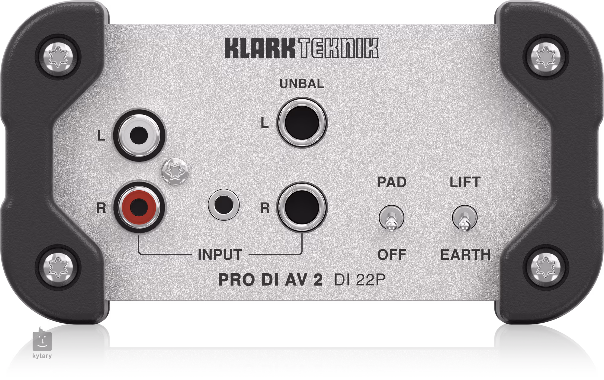 A KLARK TEKNIK DI 22P egy passzív sztereó DI doboz 2x 6,3 mm-es TS jack, 3,5 mm-es TRS jack, RCA és két XLR kimenettel, kapcsolható bemeneti csillapítással hangszerek/készülékek számára hangszer, vonal és hangszóró jelszintekkel, Midas transzformátorokkal a maximális jelintegritásért, kapcsolható földeléssel és alumínium házzal.