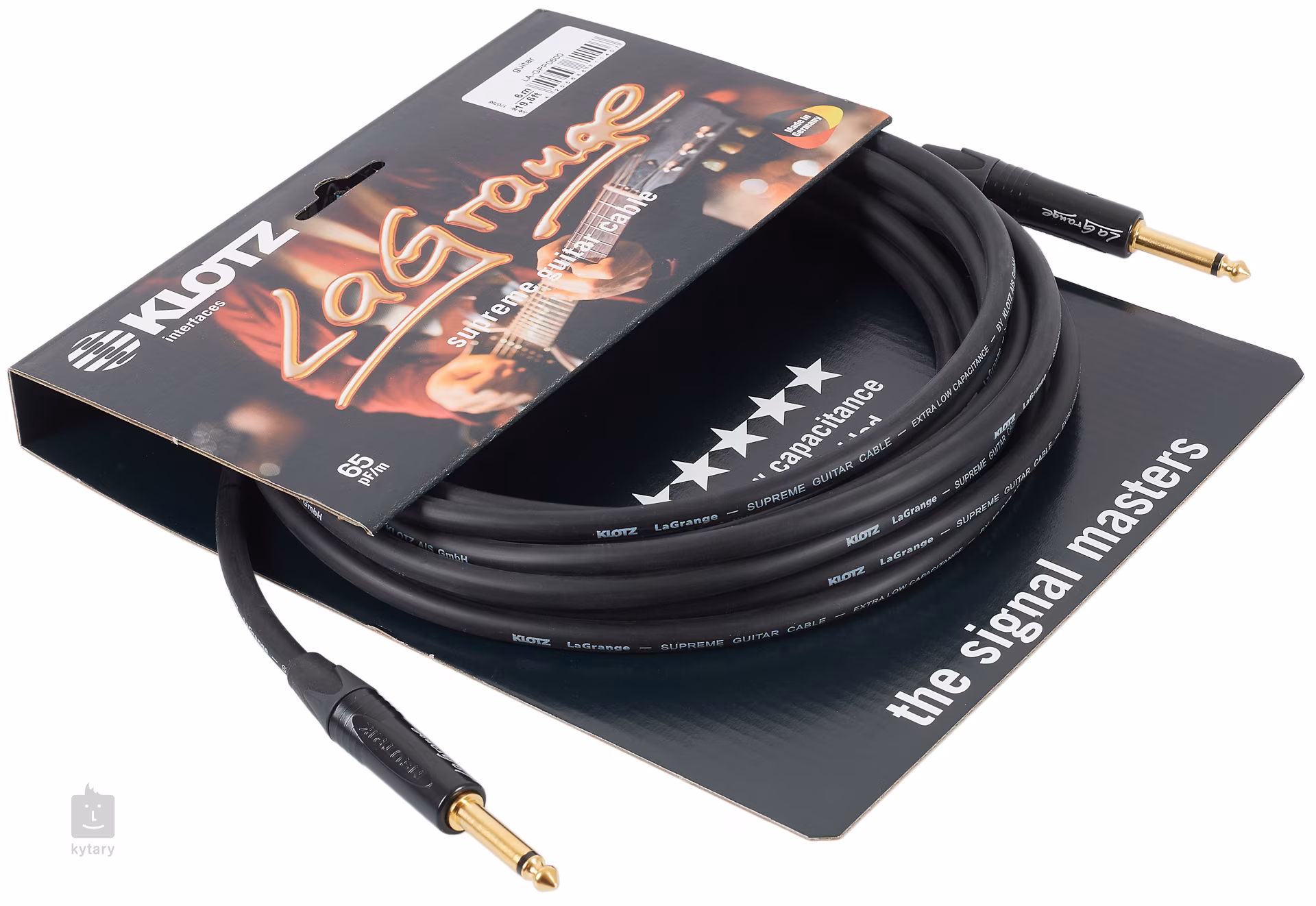 A LaGrange termékcsaládba tartozó Klotz hangszerkábelek 1985 óta léteznek, és fennállásuk alatt nagyon népszerűek voltak. Nagy vonzerőjük a villámgyors válasz, a dinamikus hangzás és a minimális tömörítés. Az ultraalacsony, 65 pF/m-es kapacitás biztosítja a hűséges hangátvitelt, a hármas árnyékolás pedig megbízható védelmet nyújt a zajok és a zajok ellen. A magban lévő vezető kiváló minőségű rézből készült. Az eredmény egy tiszta, frekvenciakiegyenlített hangzás, amelyet még a legigényesebb zenészek is értékelni fognak. Ez a modell két egyenes, aranyozott csatlakozóval rendelkezik, amelyek kiváló vezetőképességet biztosítanak. Hossza 6 méter.