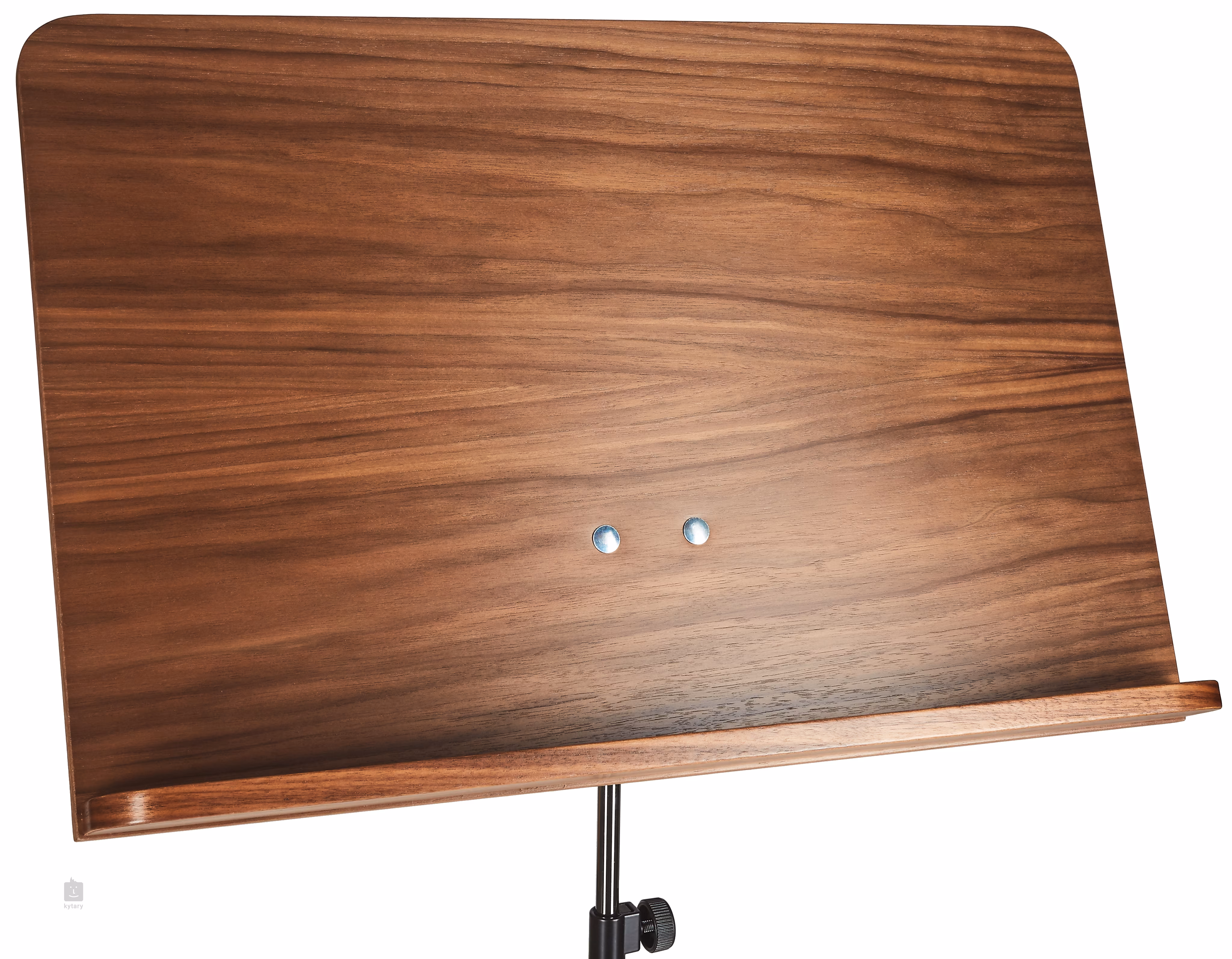 Extra magas, professzionális acél kottaállvány fa tetővel. A tábla pontos rögzítése V-blokkal.Magasság 740/1635 mm. Fekete és diófa színben kapható.