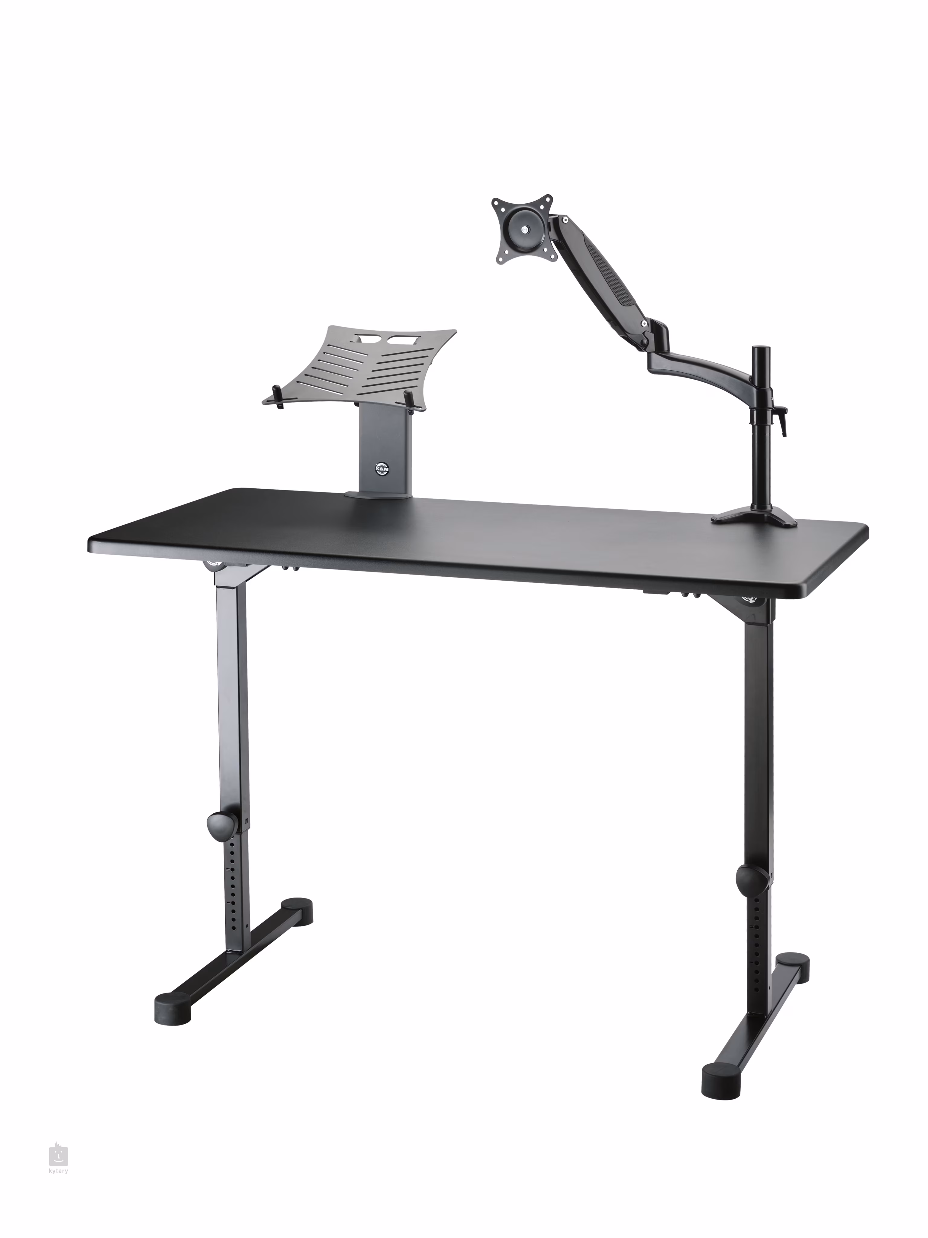 Professzionális DJ asztal, amely alkalmas élő előadásra, stúdiómunkára vagy próbaterembe. A munkafelület rétegelt lemezből készült, és 1170 x 600 mm-es méretekkel rendelkezik, így könnyen elfér rajta egy DJ-keverő, egy laptop és egyéb felszerelés. Az állítható magasságú szerkezet ezután tartós acélból készül. Az egész asztal pillanatok alatt összecsukható, és nagyon kompakt méretű, ideális a produkciók közötti szállításhoz.