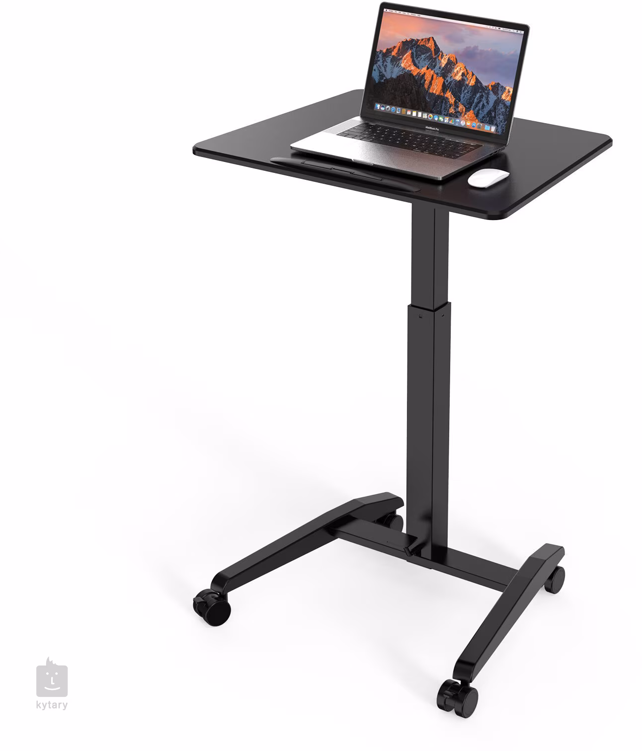 A állvány nagy előnye a 770 és 1130 mm közötti fokozatmentes magasságállítás, amely kényelmesen kezelhető a lábfékkar segítségével. Ennek köszönhetően a magasság könnyen beállítható a munka megszakítása nélkül. A praktikus mobilitást négy forgókerék biztosítja fékkel, amelyek lehetővé teszik az állvány könnyű mozgatását és egyúttal biztonságos rögzítését a kívánt helyen.