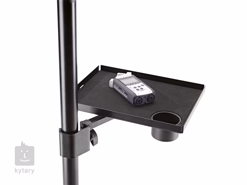 Acél tárolópult, amely könnyen és egyszerűen rögzíthető 25-42 mm csőátmérőjű állványokra. 250 x 330 mm-es felületével ideális tároló a kompakt keverők, vezérlők és tabletták számára. A pulton egy praktikus italtartó (csésze, bögre) is található. A pult és az állvány közötti távolság állítható.