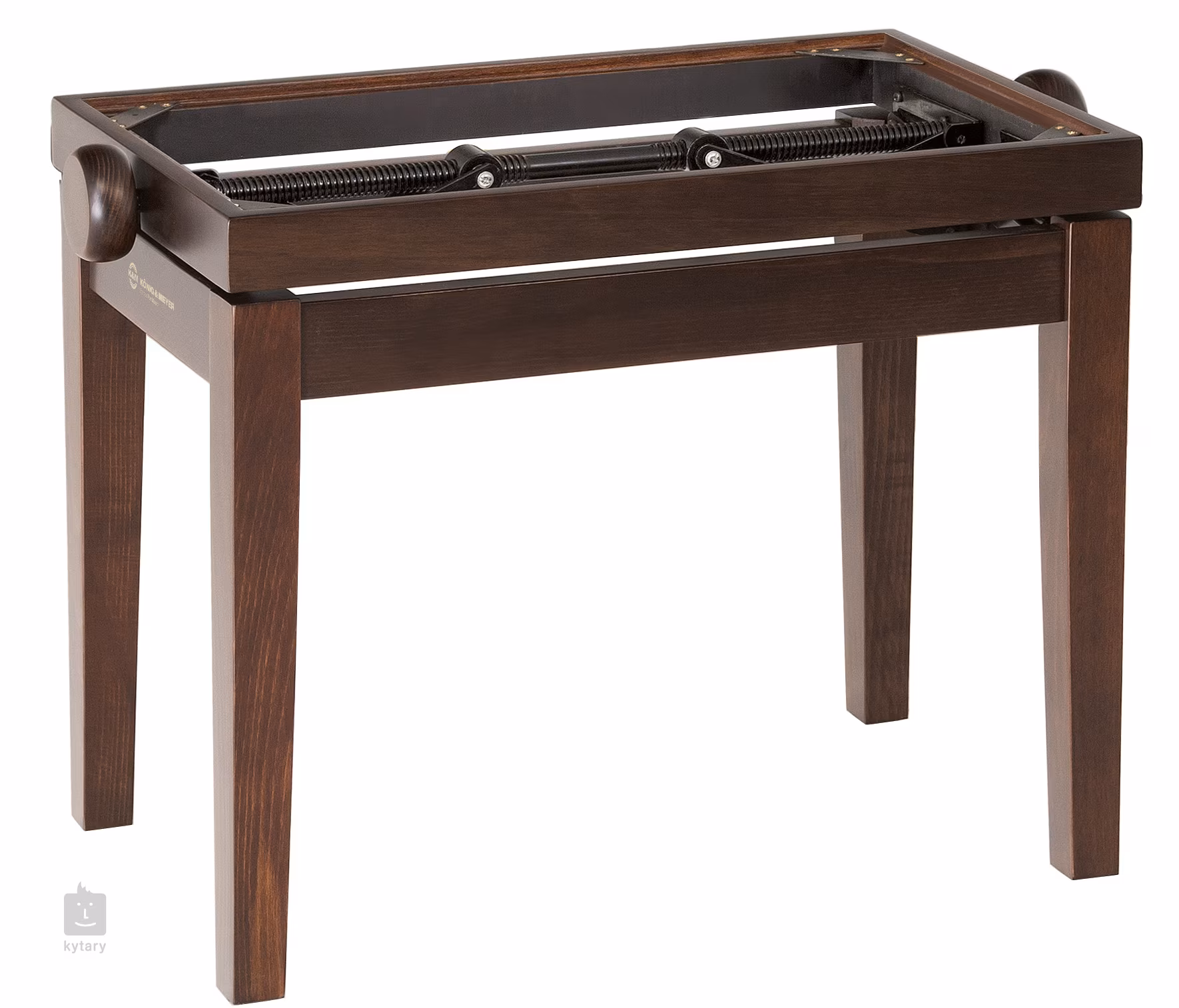 Klasszikus zongoraszék egyszerű magasságállítással. Az ülések fényes és matt kivitelben, valamint a leggyakoribb zongora- és nagybőgőszínekhez illeszkedő többféle színben kaphatók.