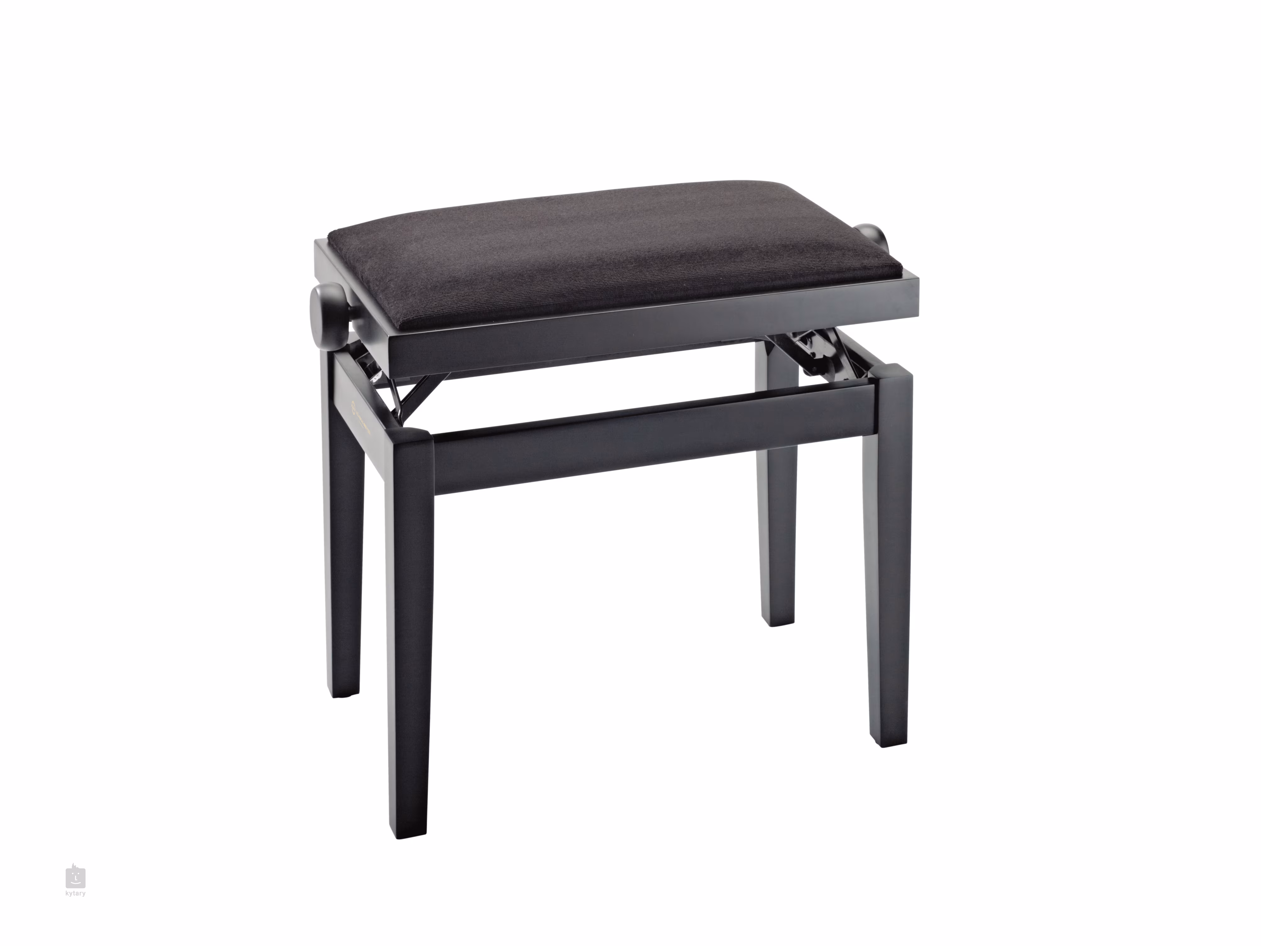 Klasszikus zongoraszék könnyű magasságállítással és kényelmes üléssel, fekete bársony huzattal. Az ülések fényes és matt kivitelben is kaphatók.