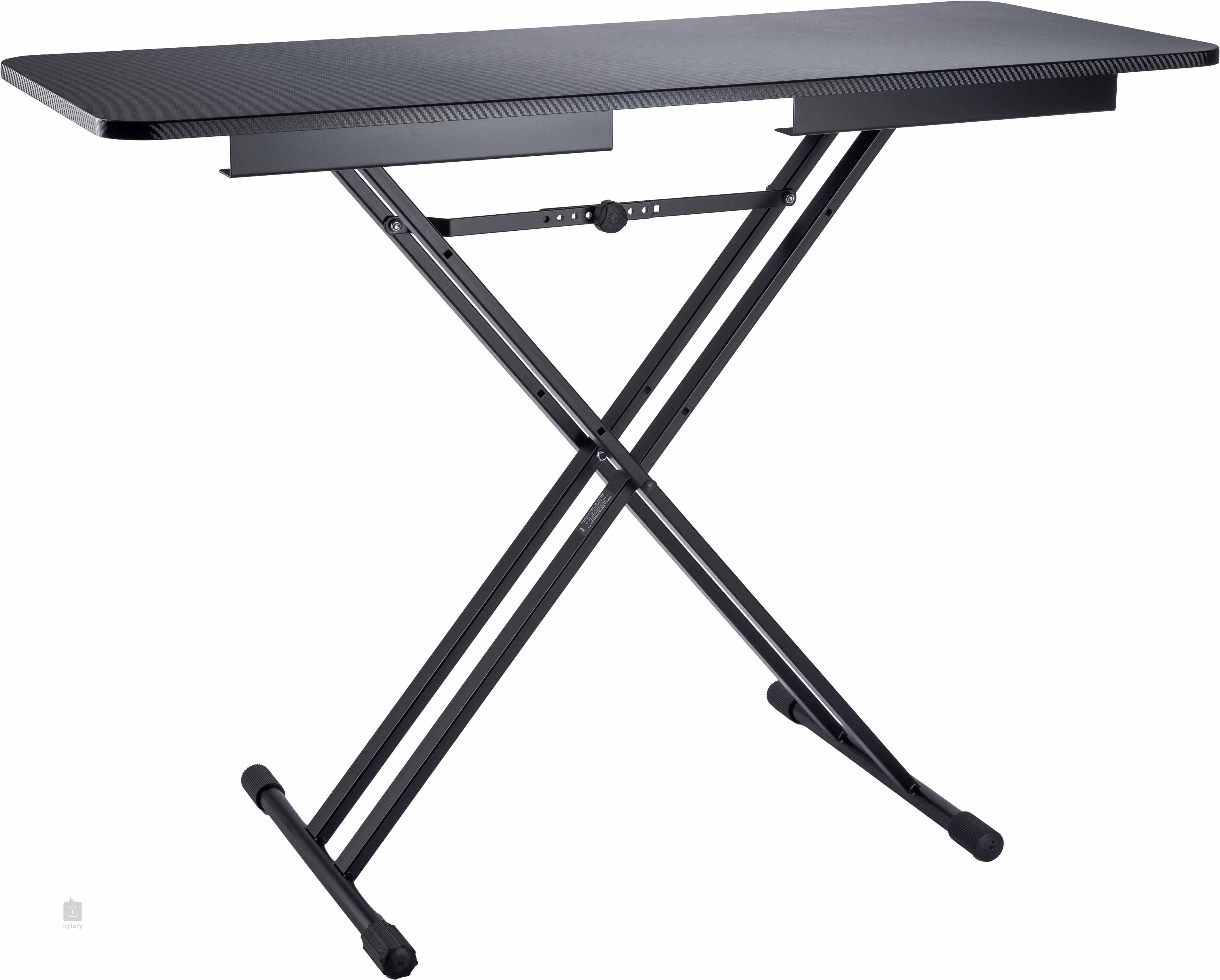 A dupla merevítéssel és beépített padlóegyengetővel ellátott állvány stabil és biztonságos alapot biztosít felszerelésének. A 450 x 1100 mm-es asztallapon nemcsak billentyűzeteknek, hanem kontrollereknek, keverőpultoknak, laptopoknak, szintetizátoroknak és egyéb eszközöknek is bőven van hely, amelyekre szükséged lehet az előadásodon.