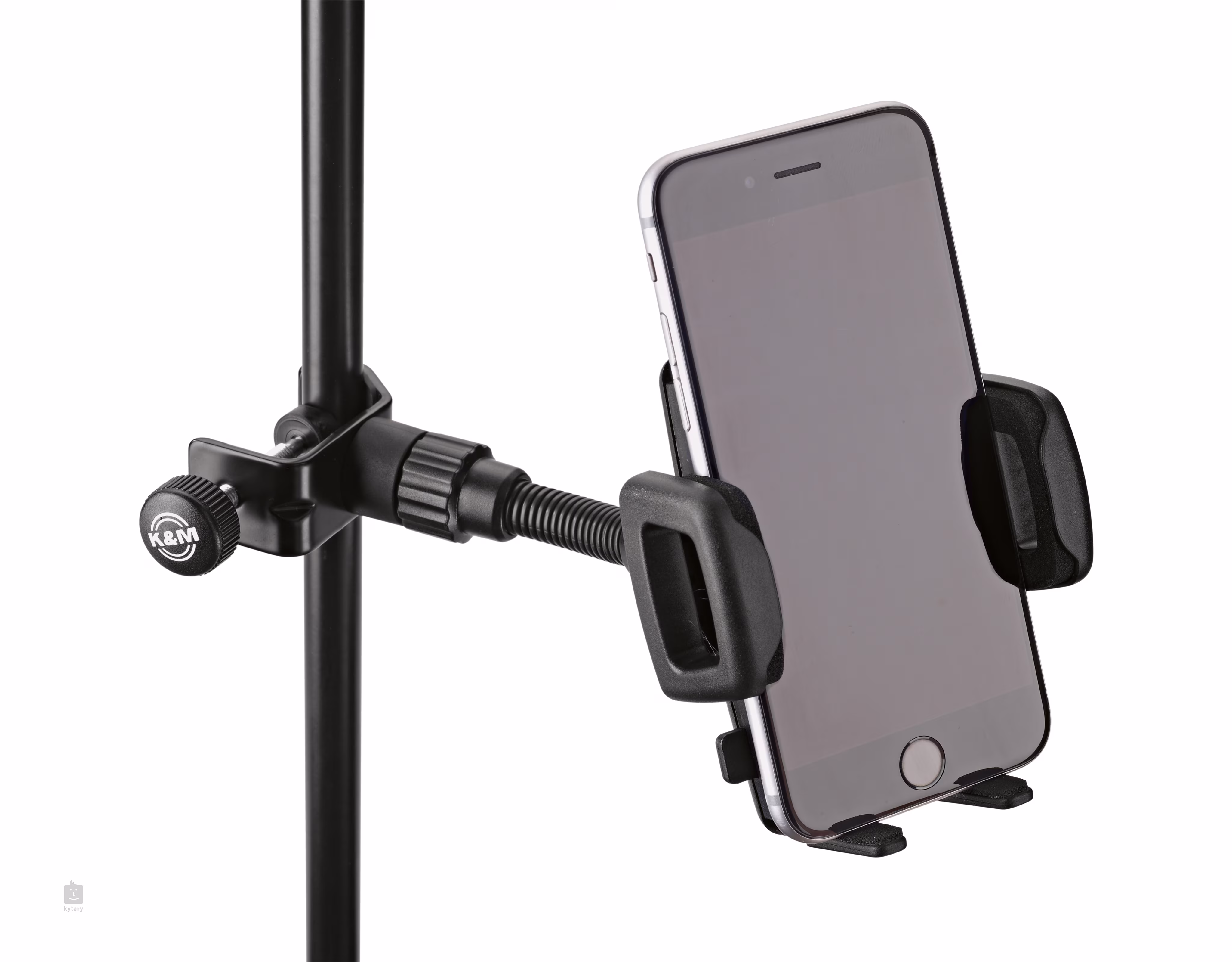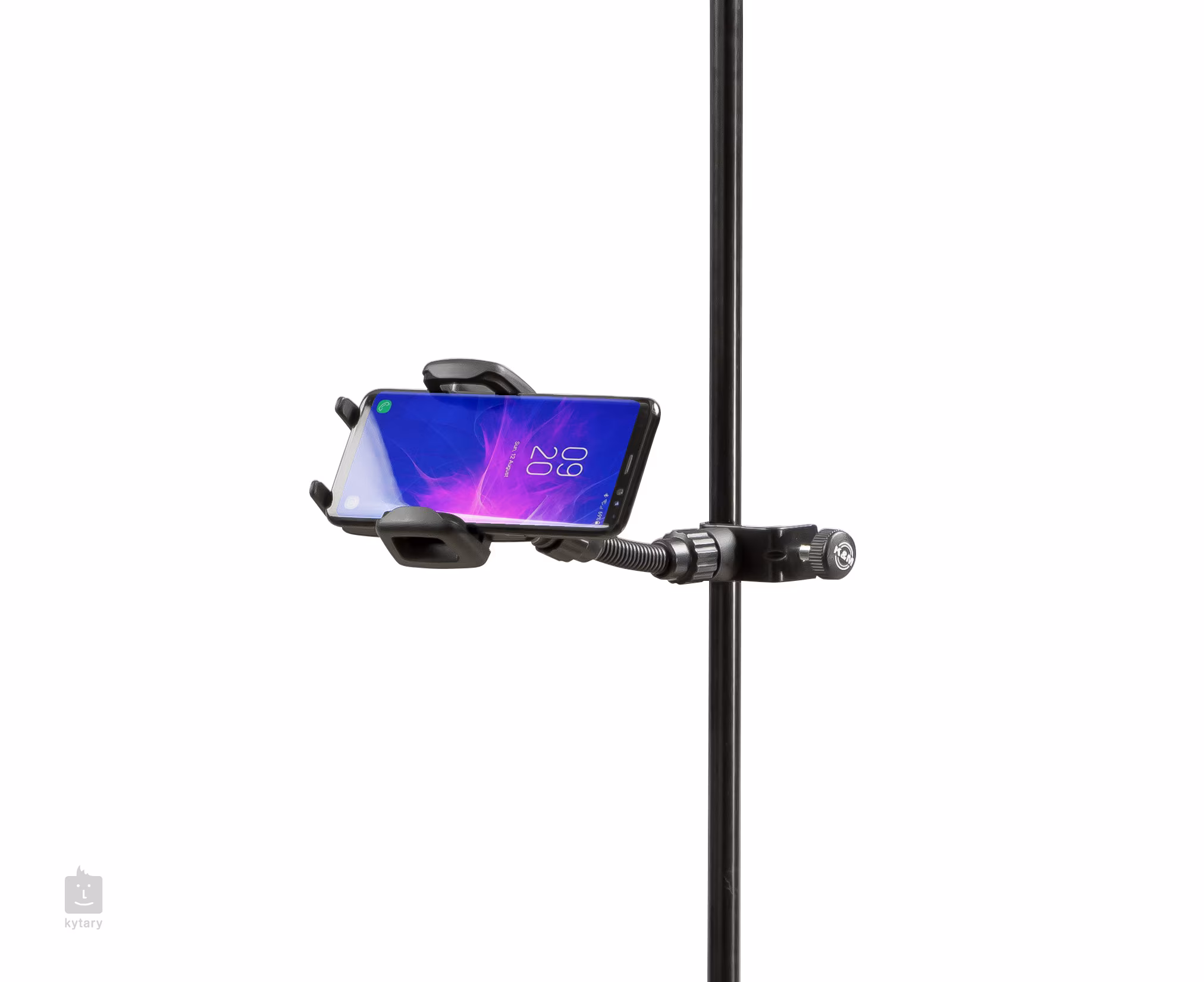 Univerzális tartó 60 és 84 mm szélességű okostelefonokhoz, iPodokhoz és mp3 lejátszókhoz. A tartó egy menetes csavar segítségével könnyen csatlakoztatható egy legfeljebb 30 mm átmérőjű rúddal rendelkező mikrofonállványhoz, így a lehető legjobban kihasználhatja a készülékben rejlő lehetőségeket élő előadás vagy stúdiómunkák során. Használhat például zenei alkalmazásokat énekléshez, egy hangszerhez vagy csak egy dal hangjegyeinek, dalszövegének vagy akkordjainak megjelenítéséhez. A tartó állítható kialakítással rendelkezik a legoptimálisabb használat érdekében, 360 fokos forgatással és 100 mm-es lengőnyakkal a megfelelő dőlésszög beállításához.