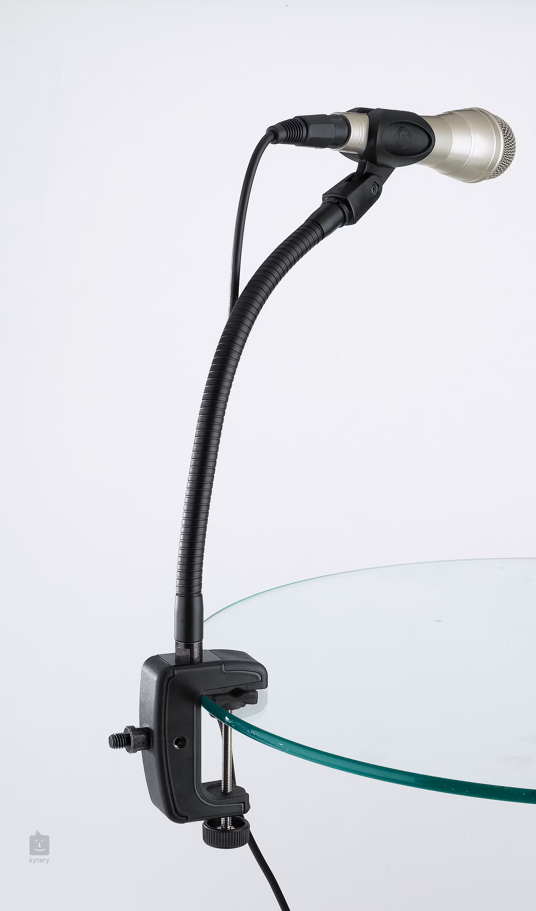 Univerzális asztali mikrofontartó, amely alkalmas mikrofontartó vagy libikóka rögzítésére. Tartós acélból készült, és 48 mm-es menethosszúságú. A beépített menettel ellátott eszköz 1/4", 3/8" vagy 5/8" menetes eszközökhöz használható.