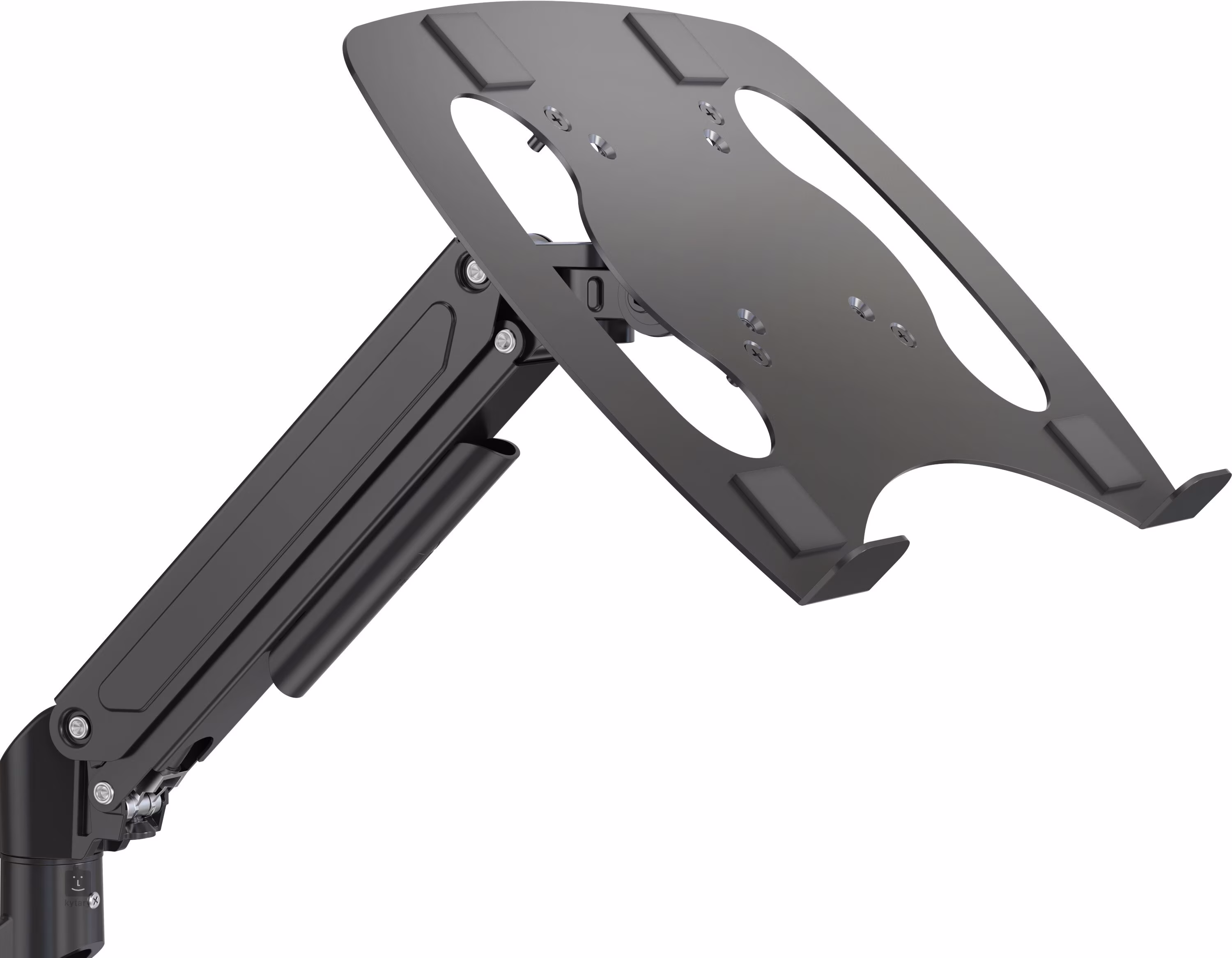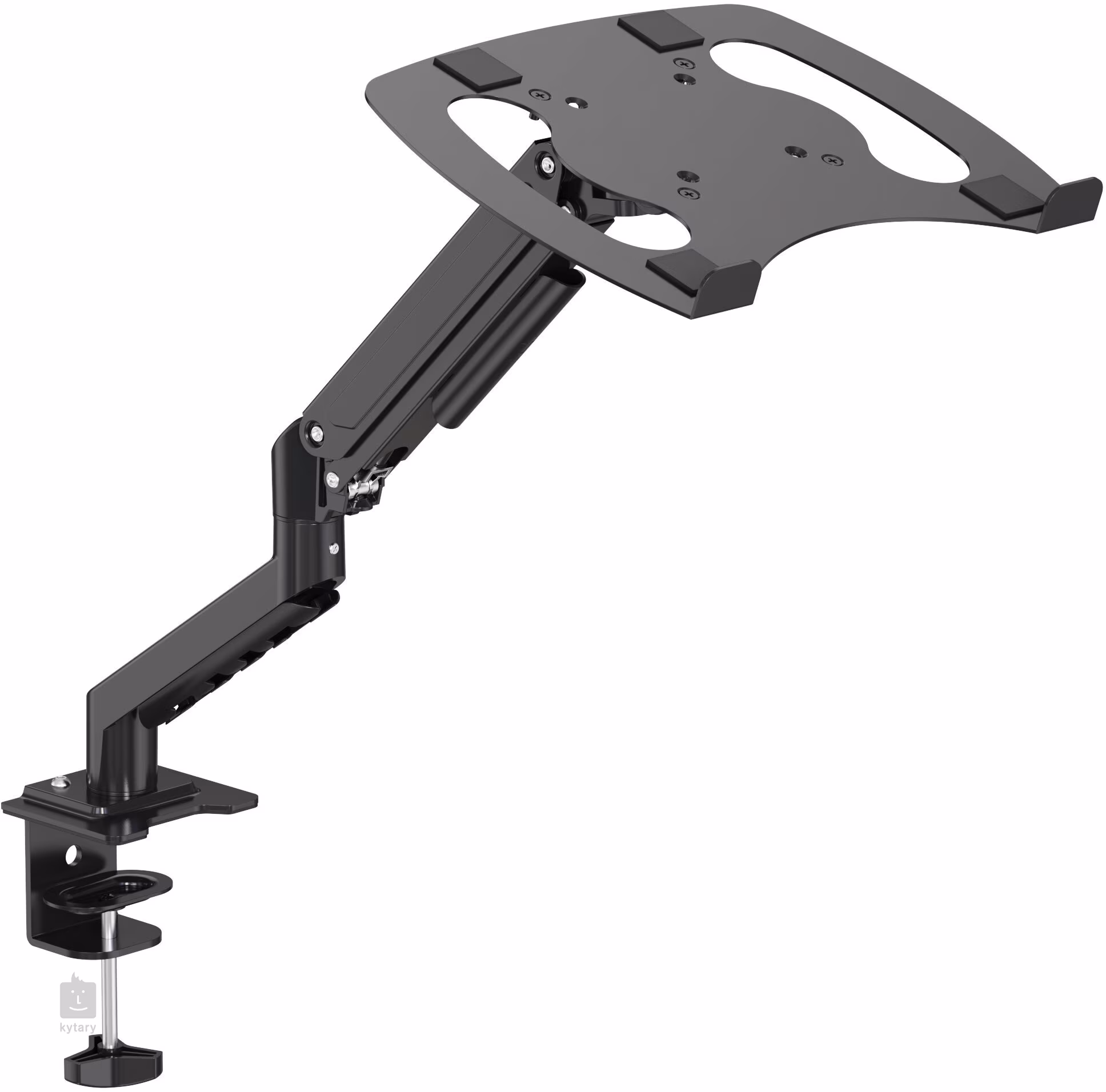 A kar pneumatikus rugóval van felszerelve, amely 150 és 390 mm közötti tartományban lehetővé teszi a magasság fokozatos beállítását. A platform emellett −85° és +90° között dönthető, 180°-ban forgatható, és az egész kar 360°-ban elforgatható, így könnyen beállíthatja az ideális látószöget a kényelmes és egészséges munkapozícióhoz. A konstrukció alumínium kart és acél lemezt kombinál a laptop számára, ami nagy szilárdságot és hosszú élettartamot biztosít.