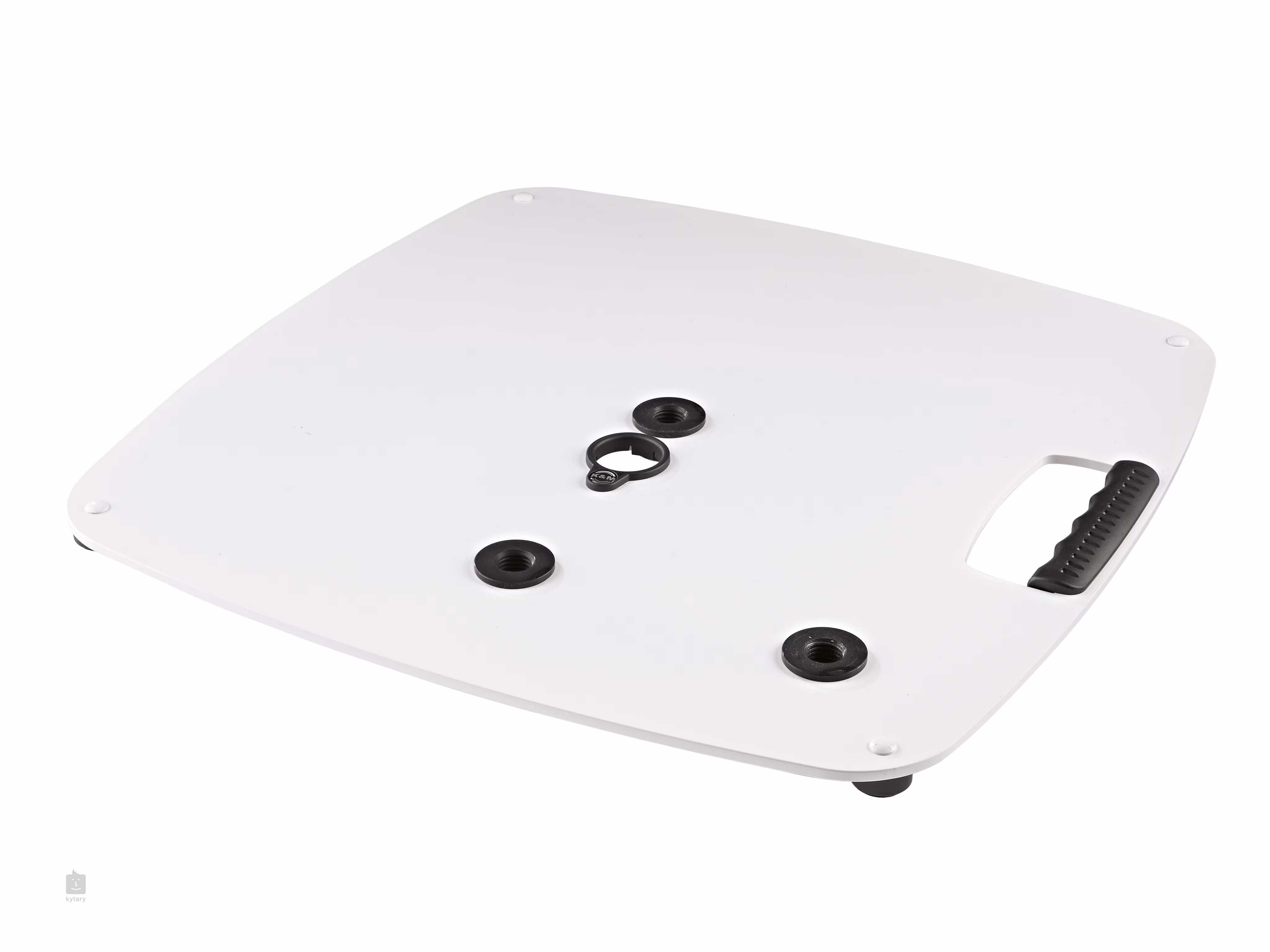 Acélból készült állványalap, amely alkalmas távtartók és M20-as menettel rendelkező állványhosszabbítások rögzítésére. Három menetes furattal rendelkezik a legrugalmasabb használathoz, kiváló stabilitással és rezgésgátló gumírozott lábakkal. A stabil markolat biztosítja, hogy kényelmesen szállítható legyen a produkciók között.